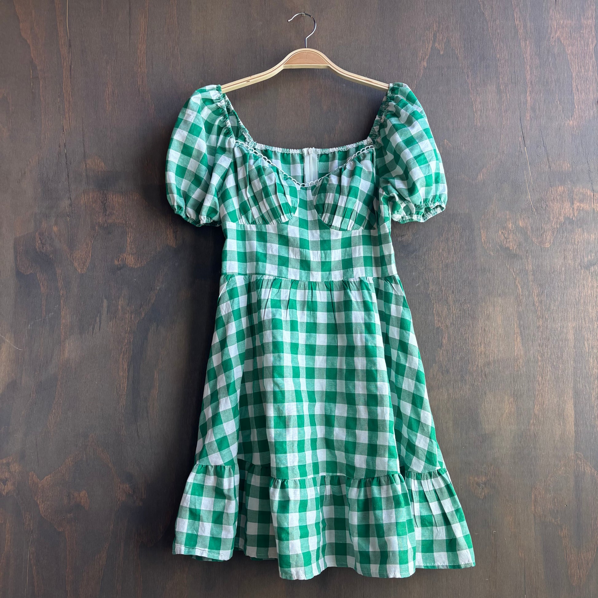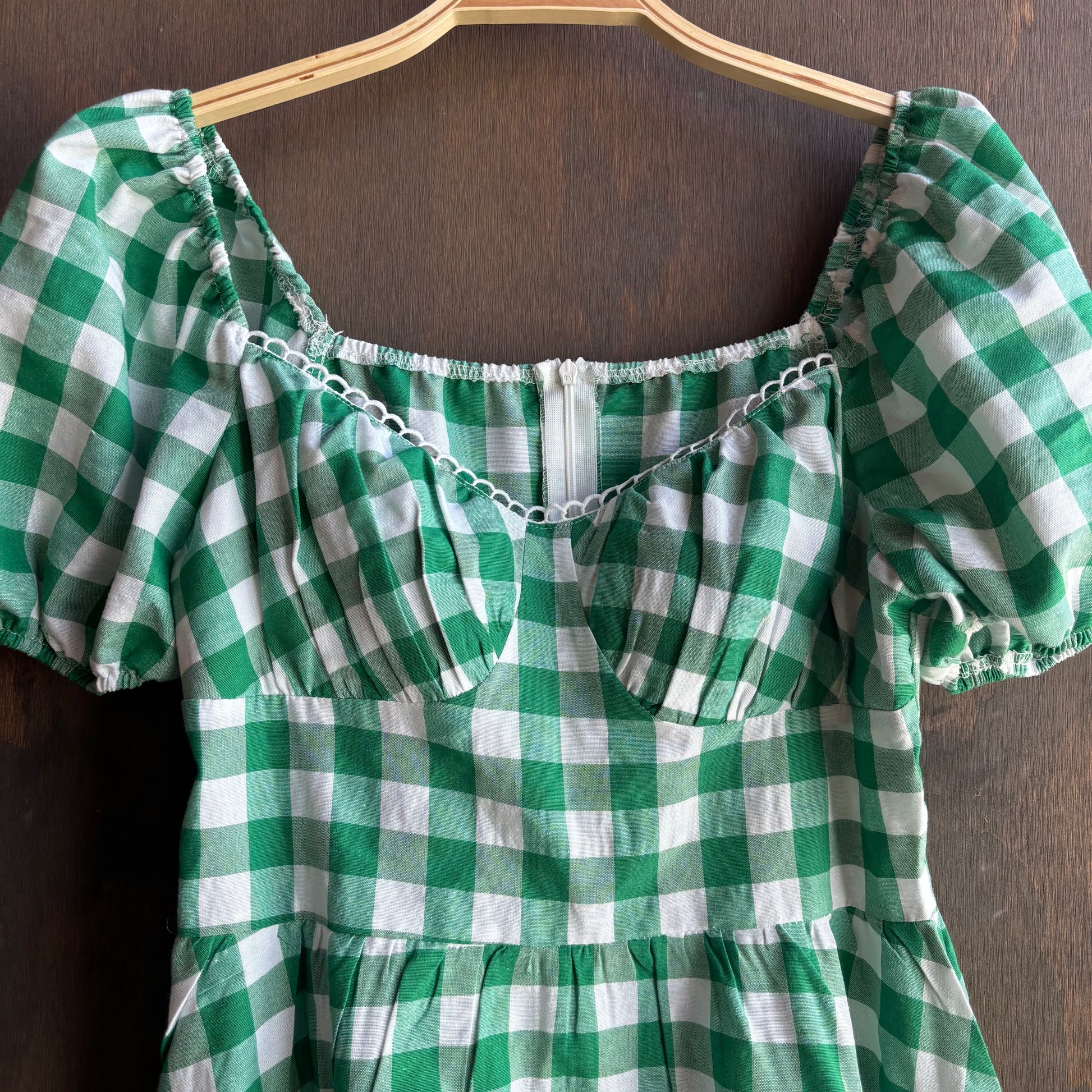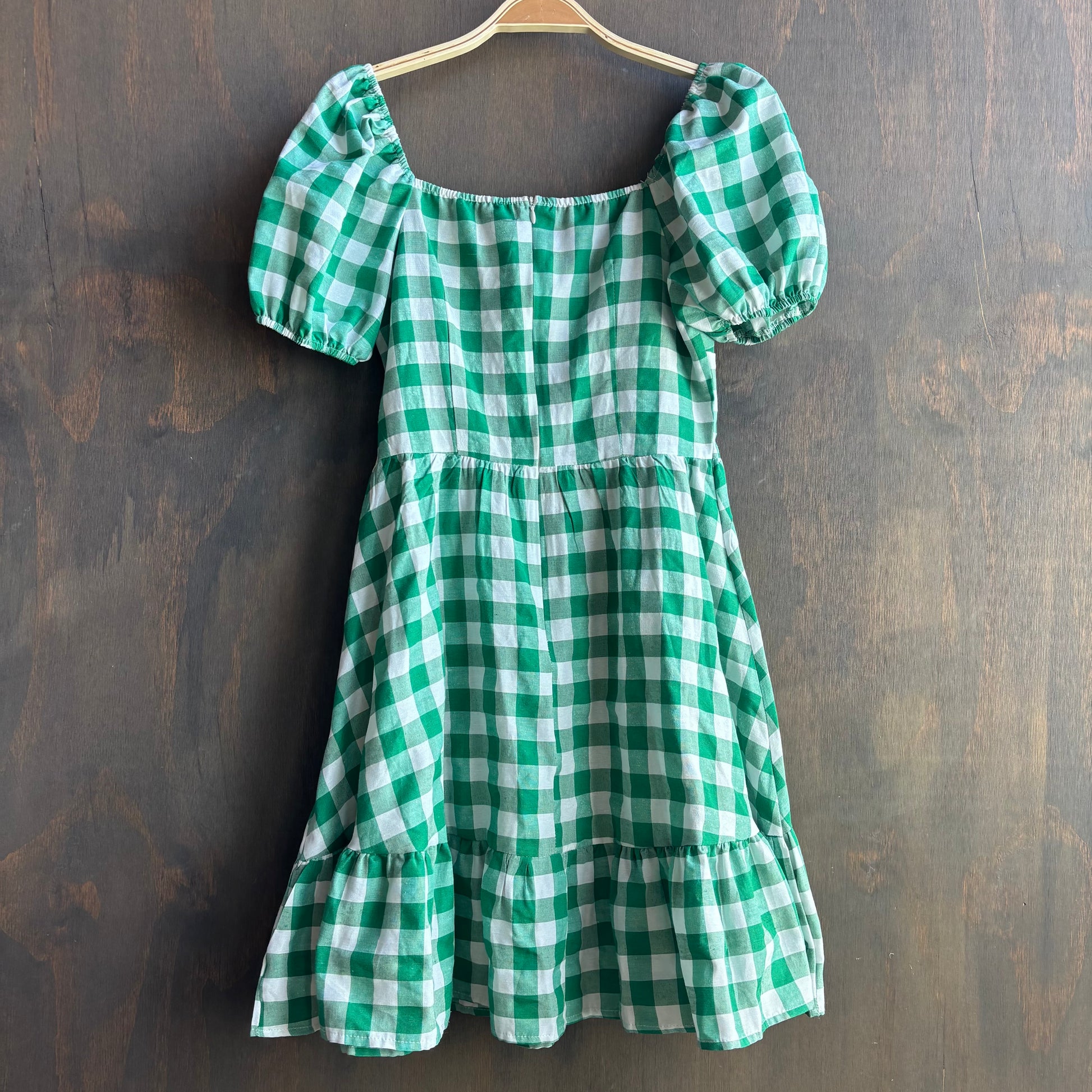 Cute Kelly Green gingham dress with Sweetheart neckline and puffed sleeves, no tags, but fits like a small
