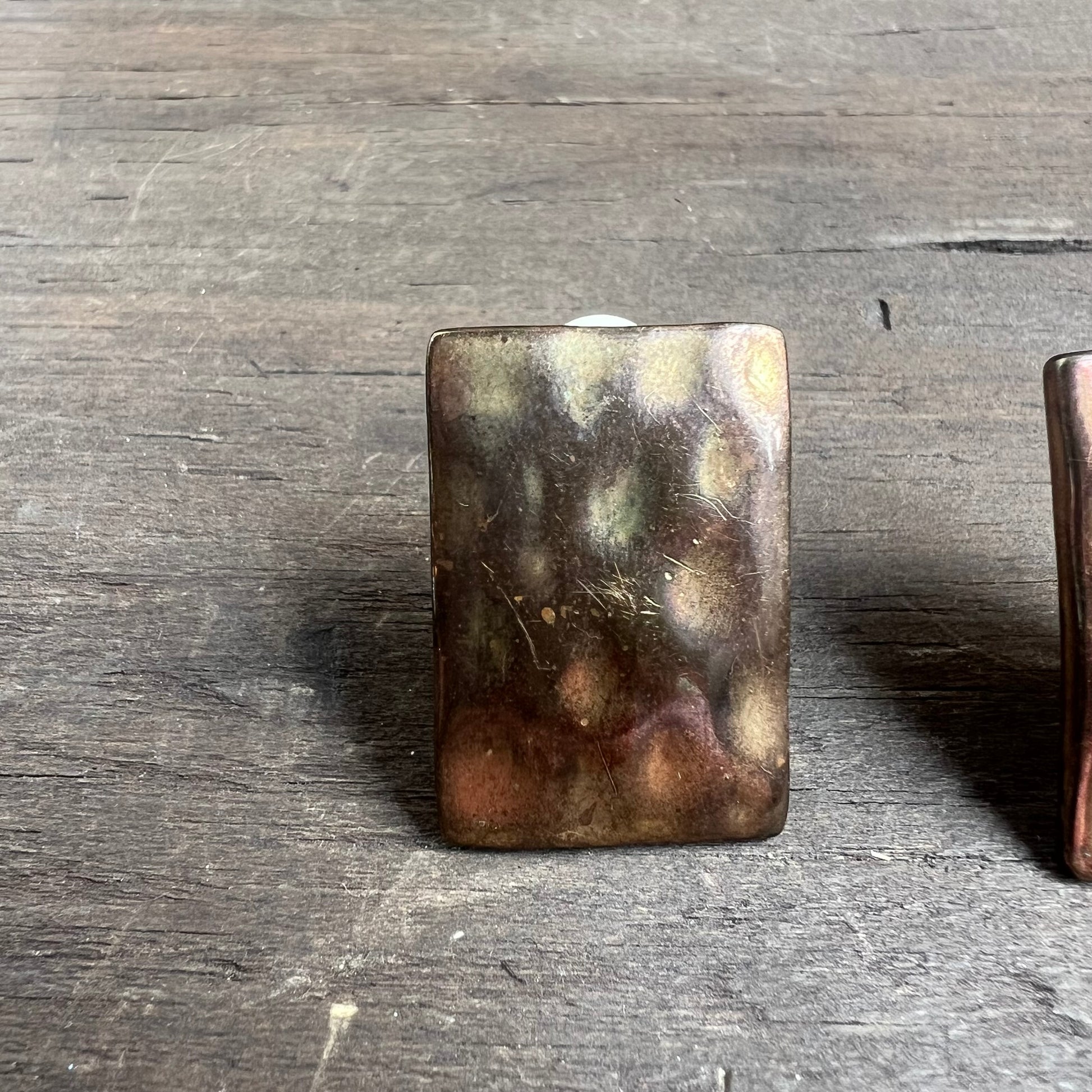 Beautiful clip on earrings with hammered brass. In great condition! See quarter for scale.