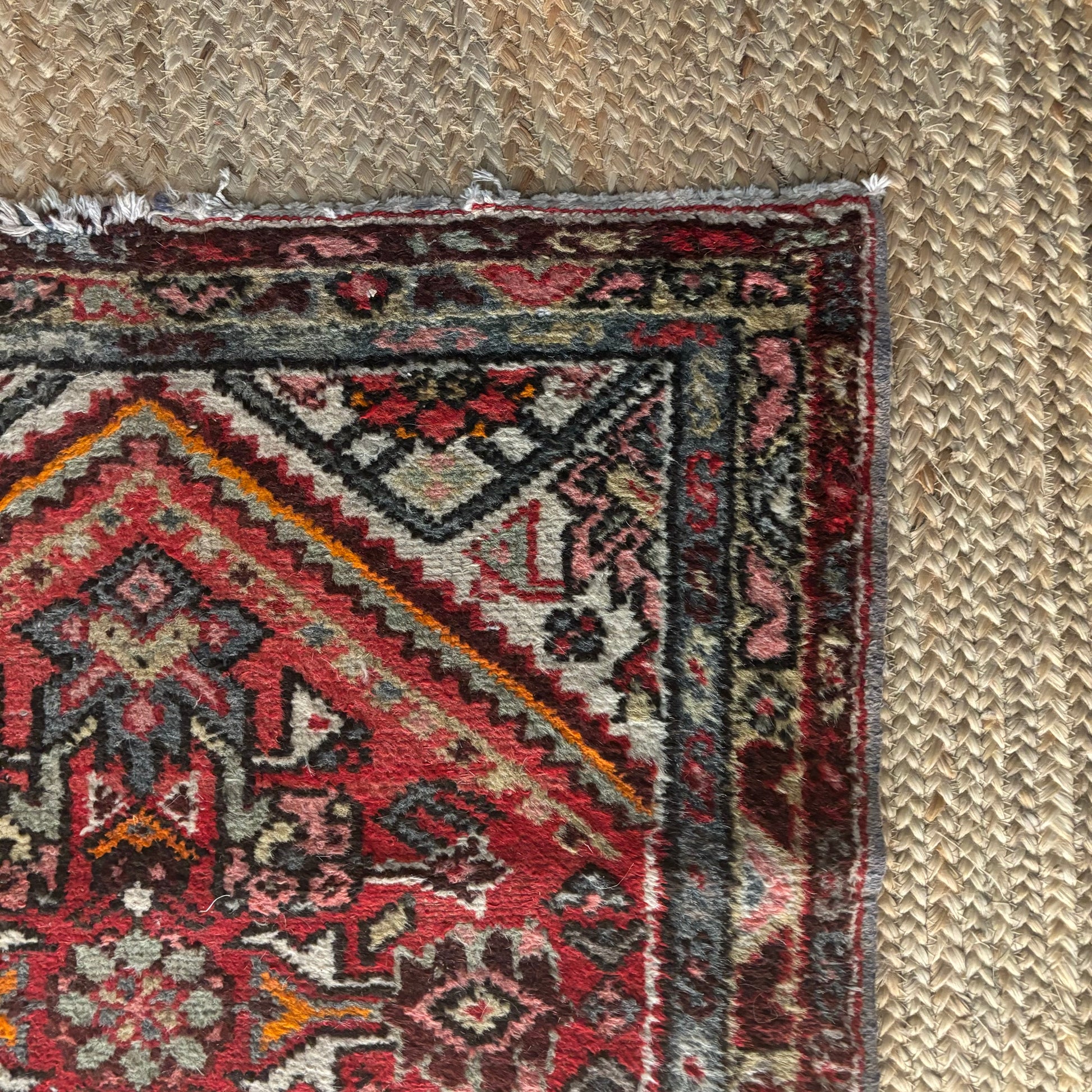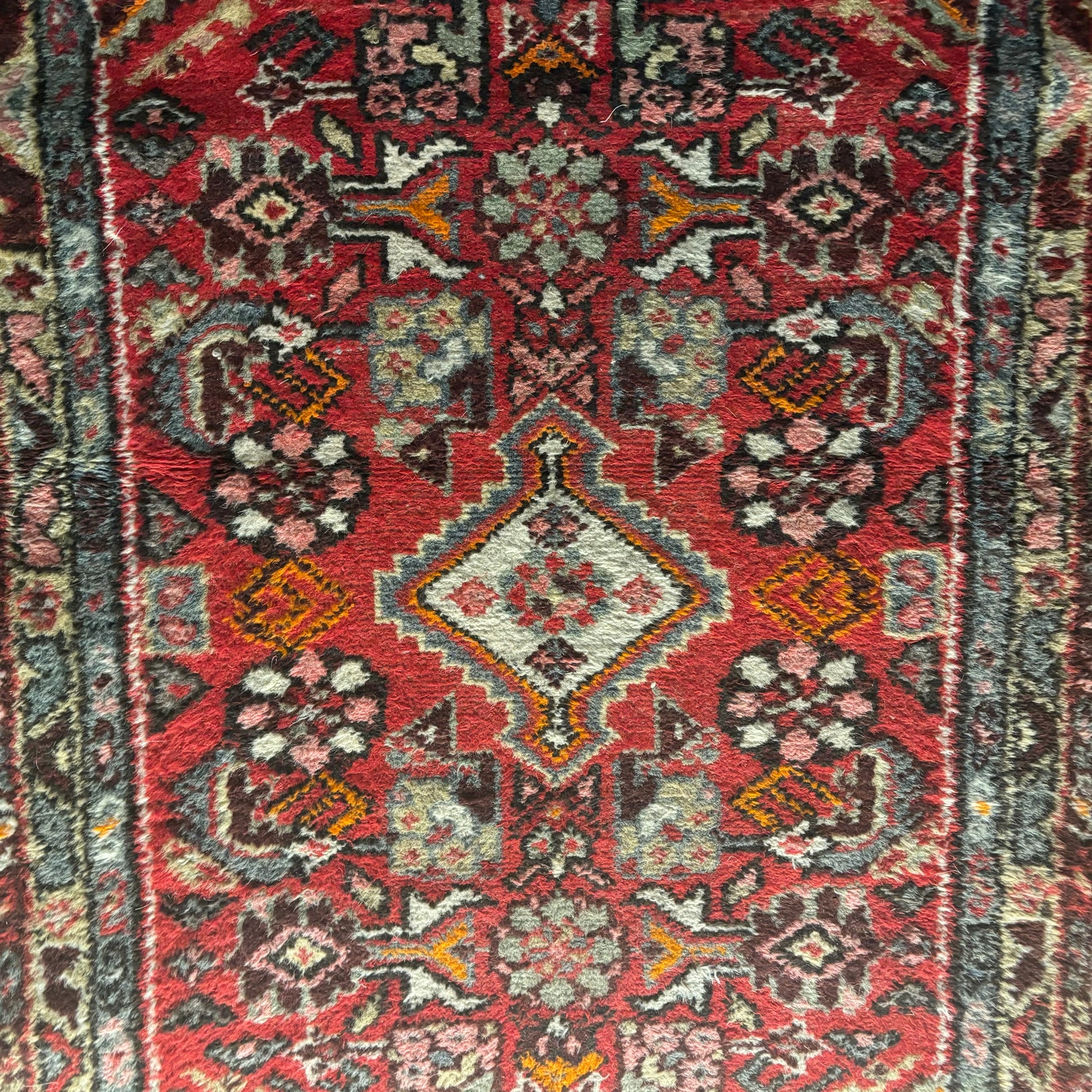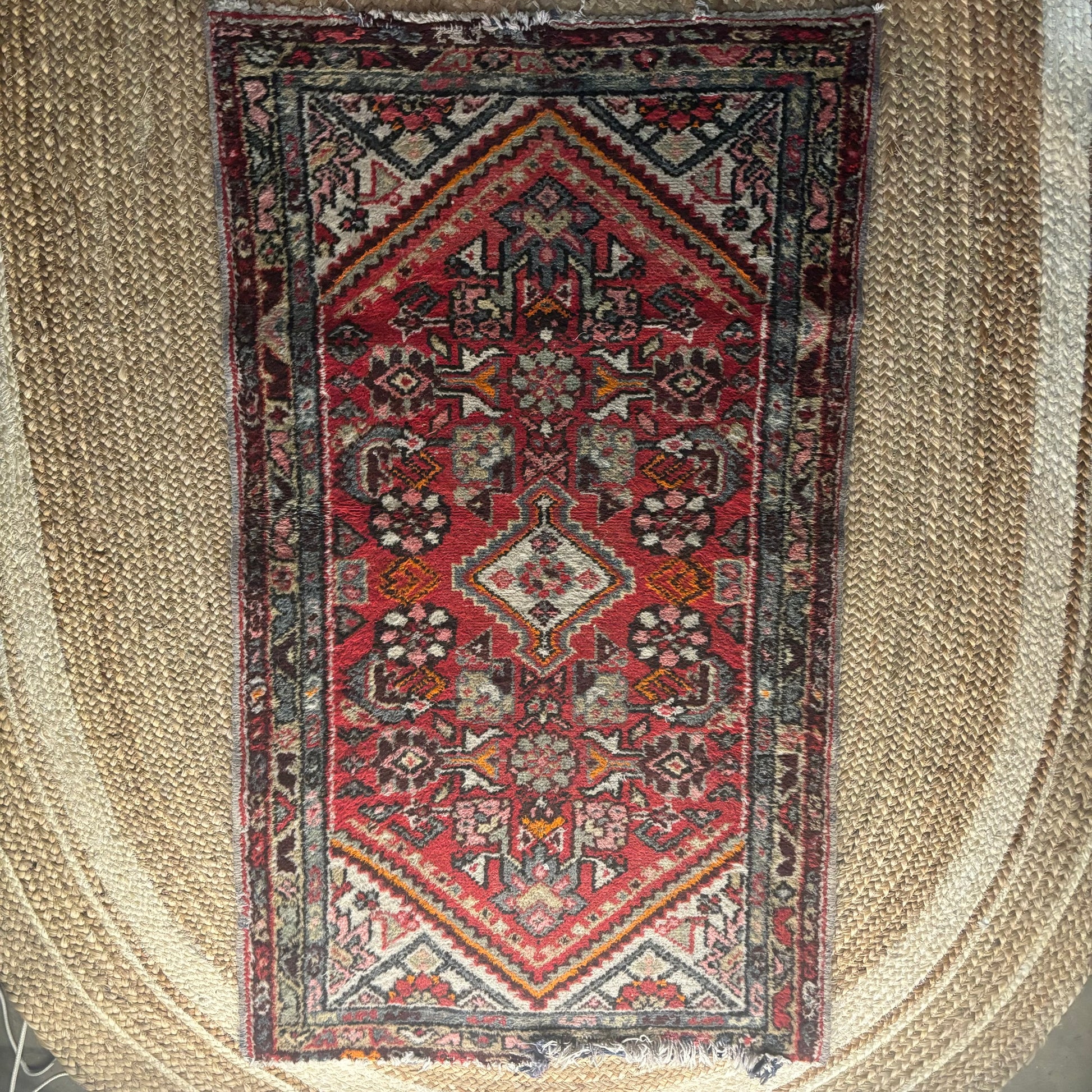 Beautiful colorful handmade Persian rug with traditional details, 48 x 28”