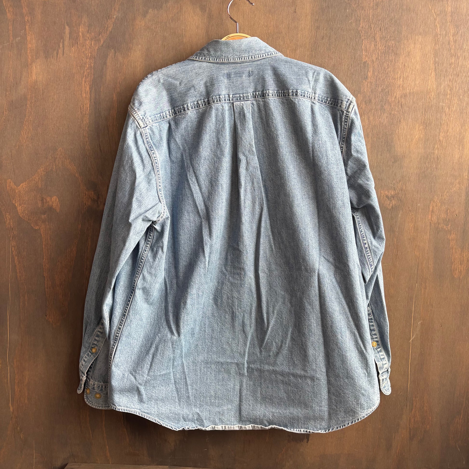 Classic medium wash Land's End denim button up shirt in great condition, size L, a closet staple for us all!