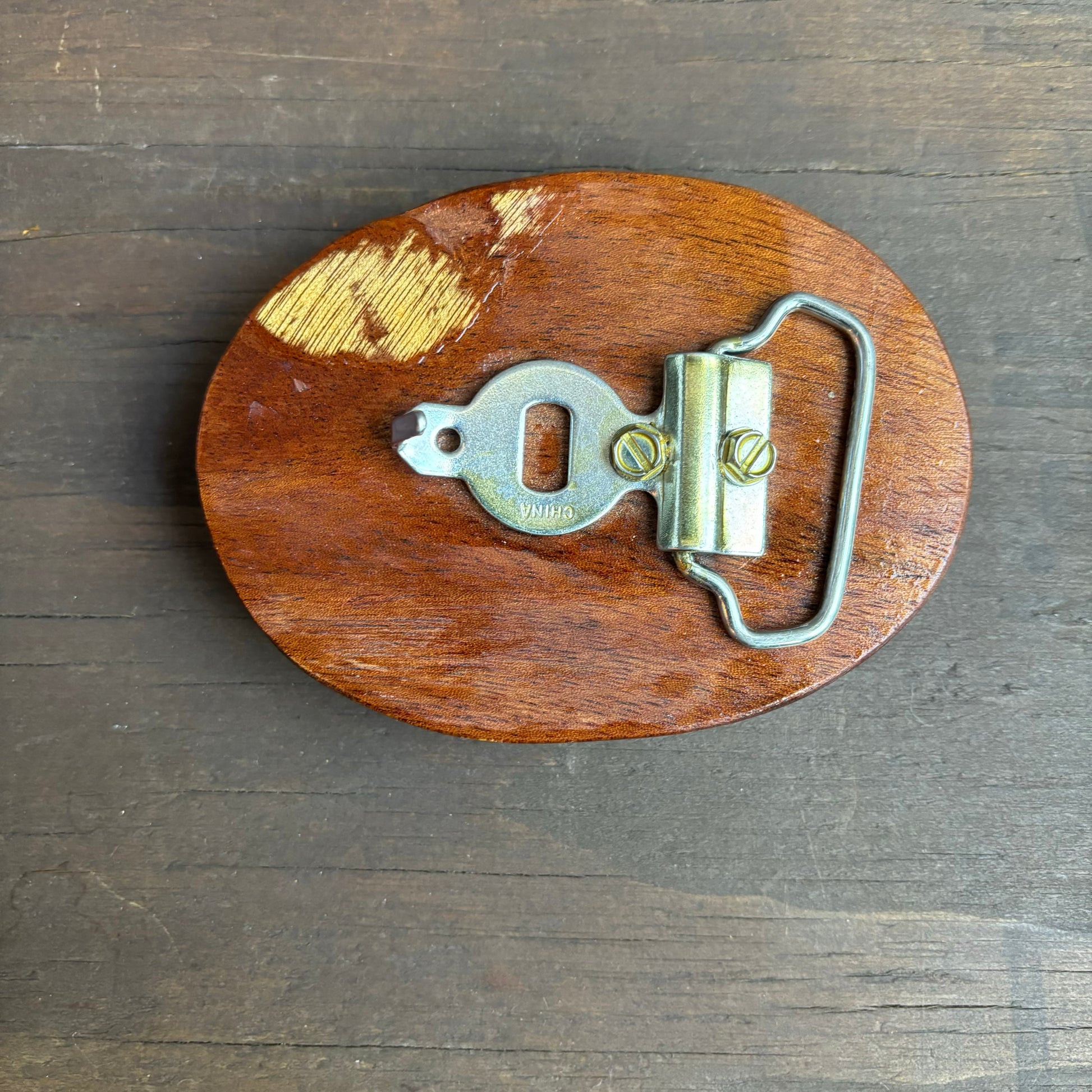 Add some character to your belt with our Laquered Wood and Stone Belt Buckle! A statement piece that will set you apart and add some flair to your outfit.