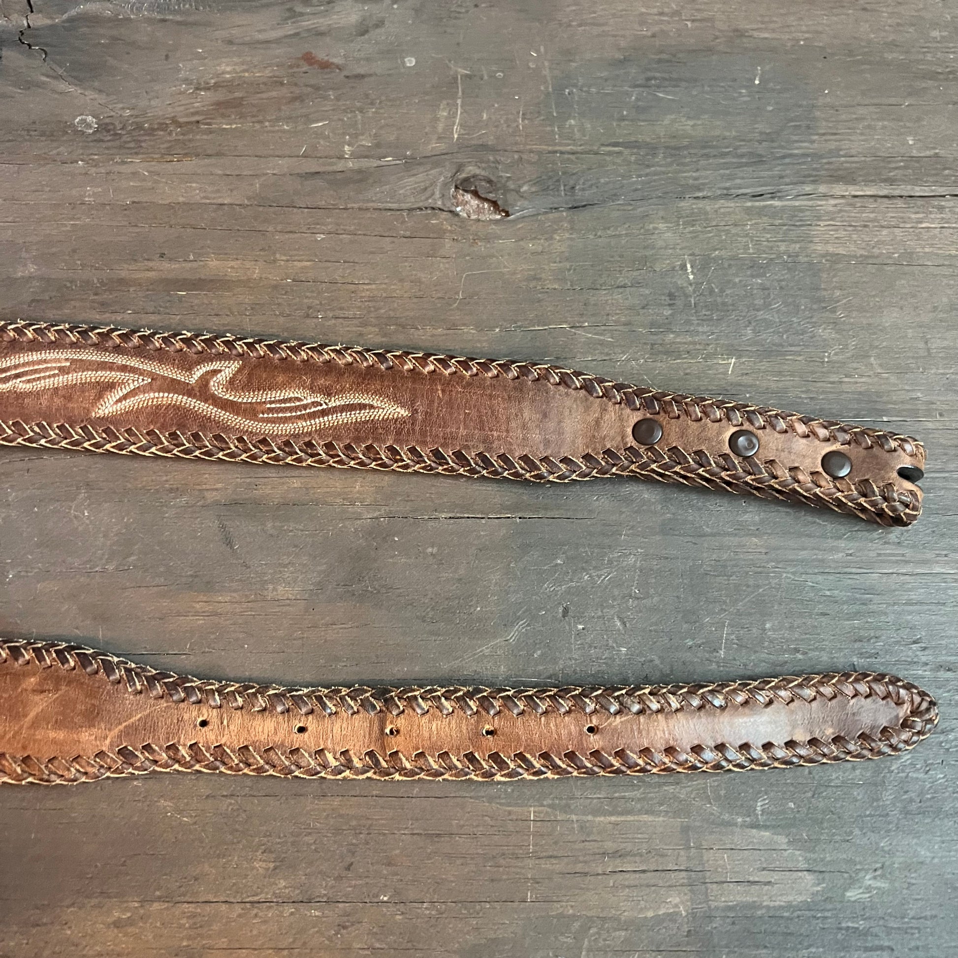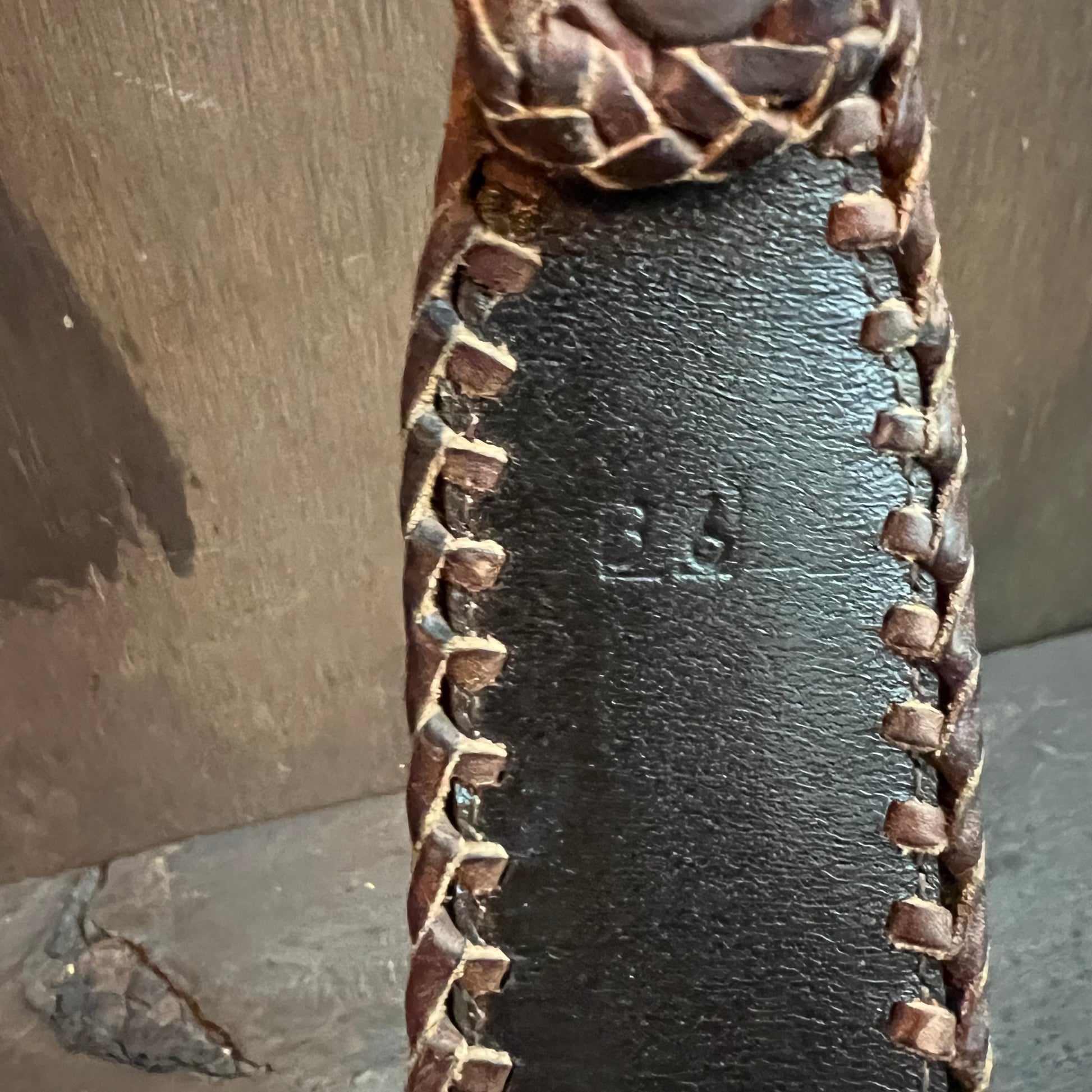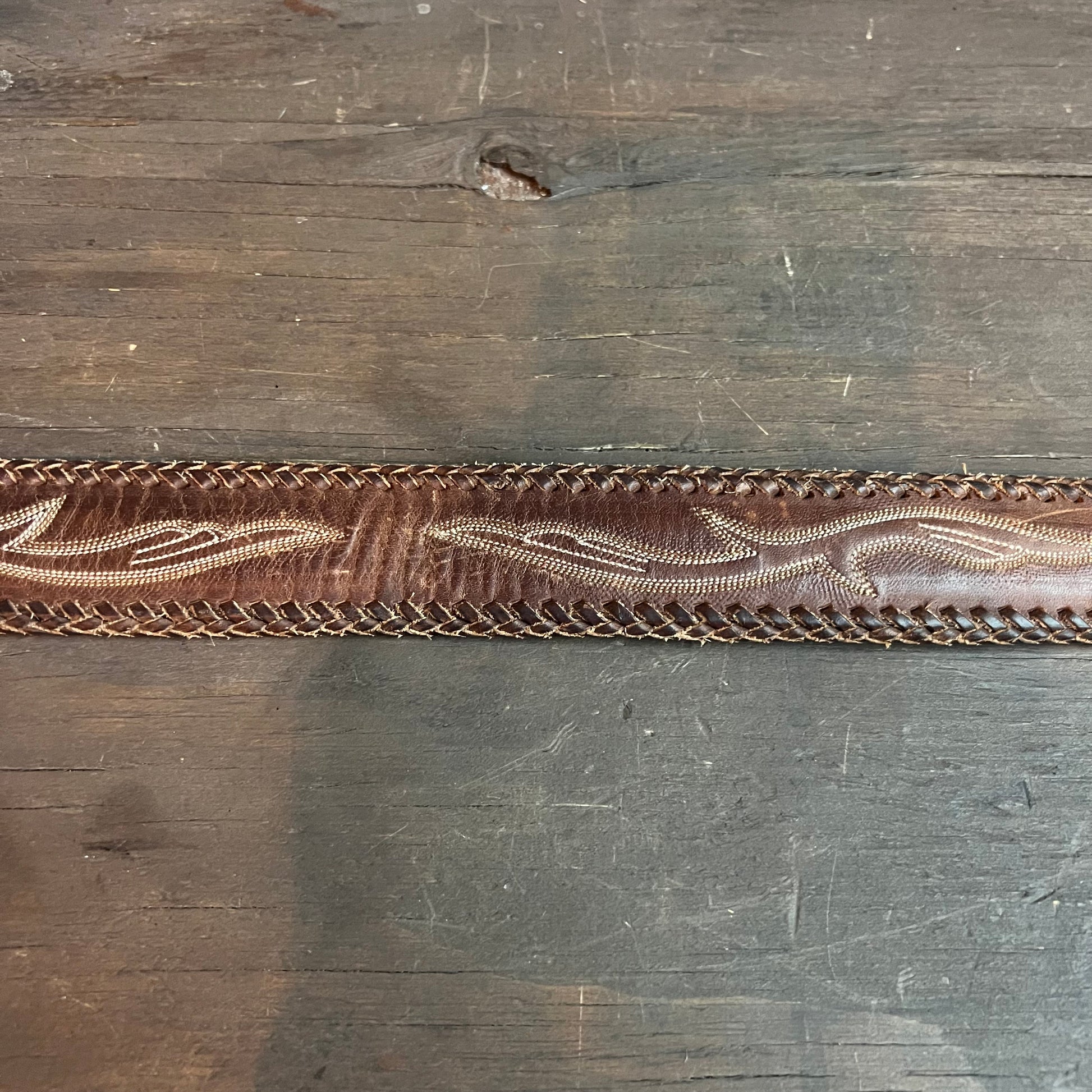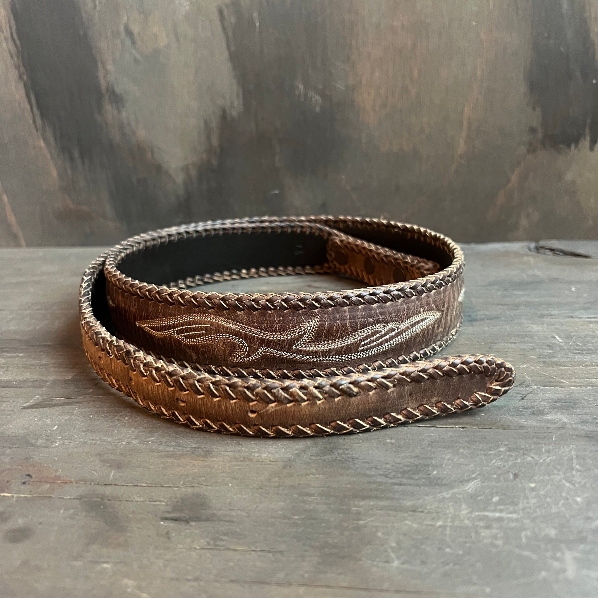 Gorgeous leather belt embellished with a braided leather lining and embroidered designs.
