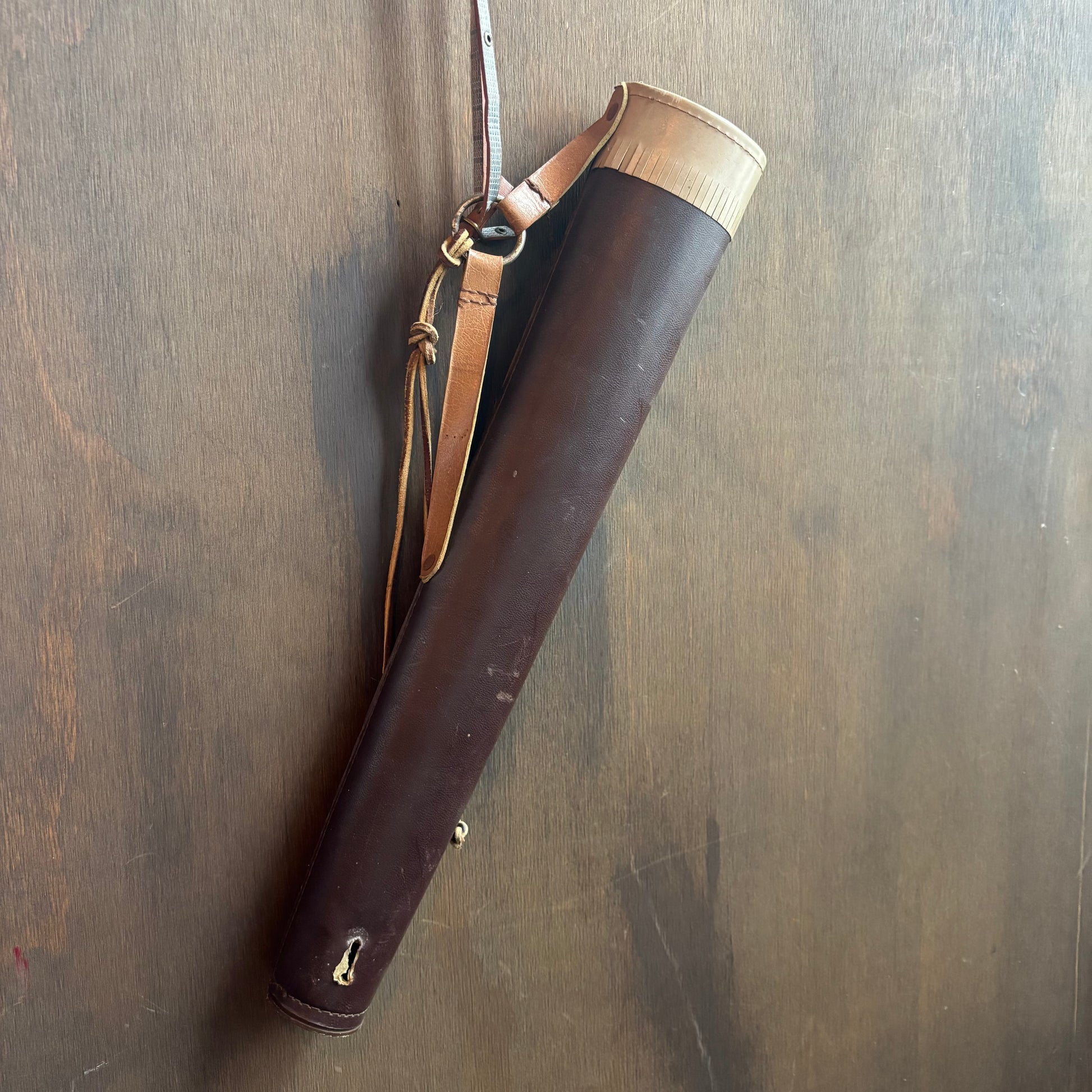 Authentic vintage leather toy sling for arrows (arrows not included), good condition with small hole on back - see photo, fully functional or a rustic decor piece. 17" long.