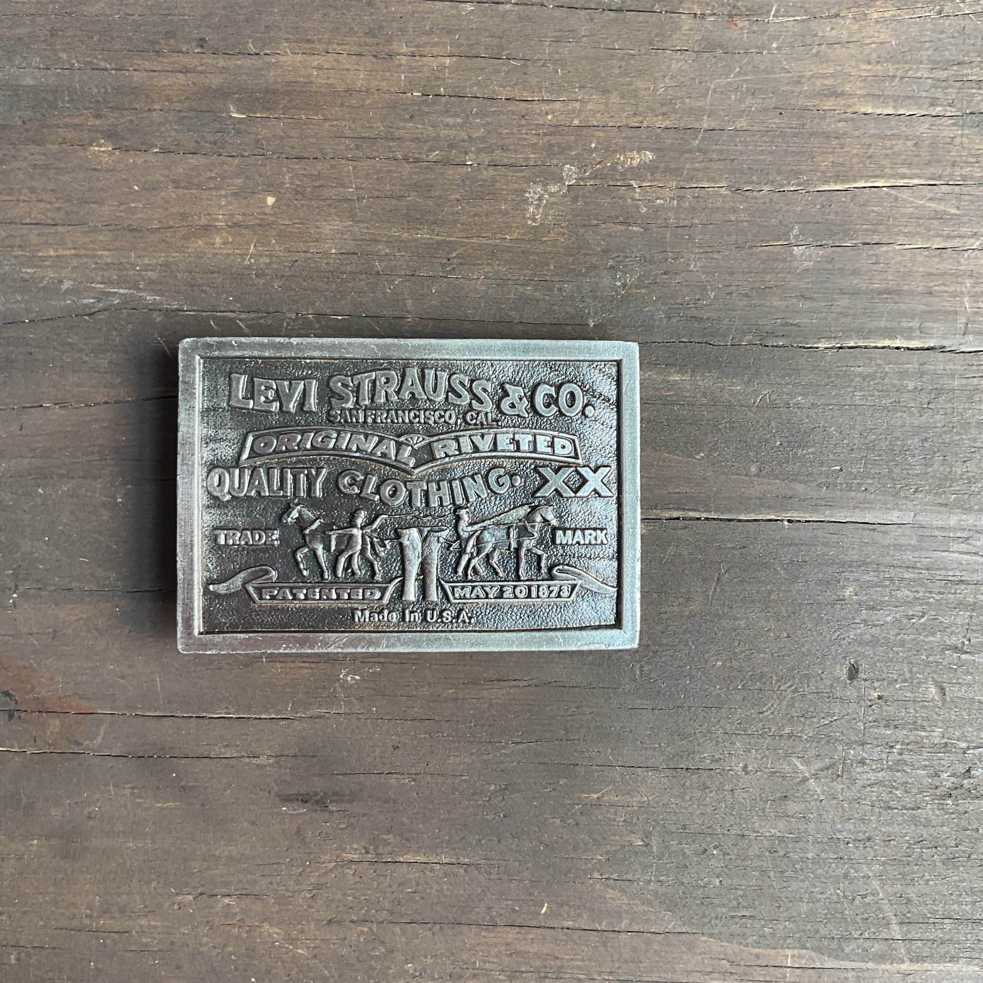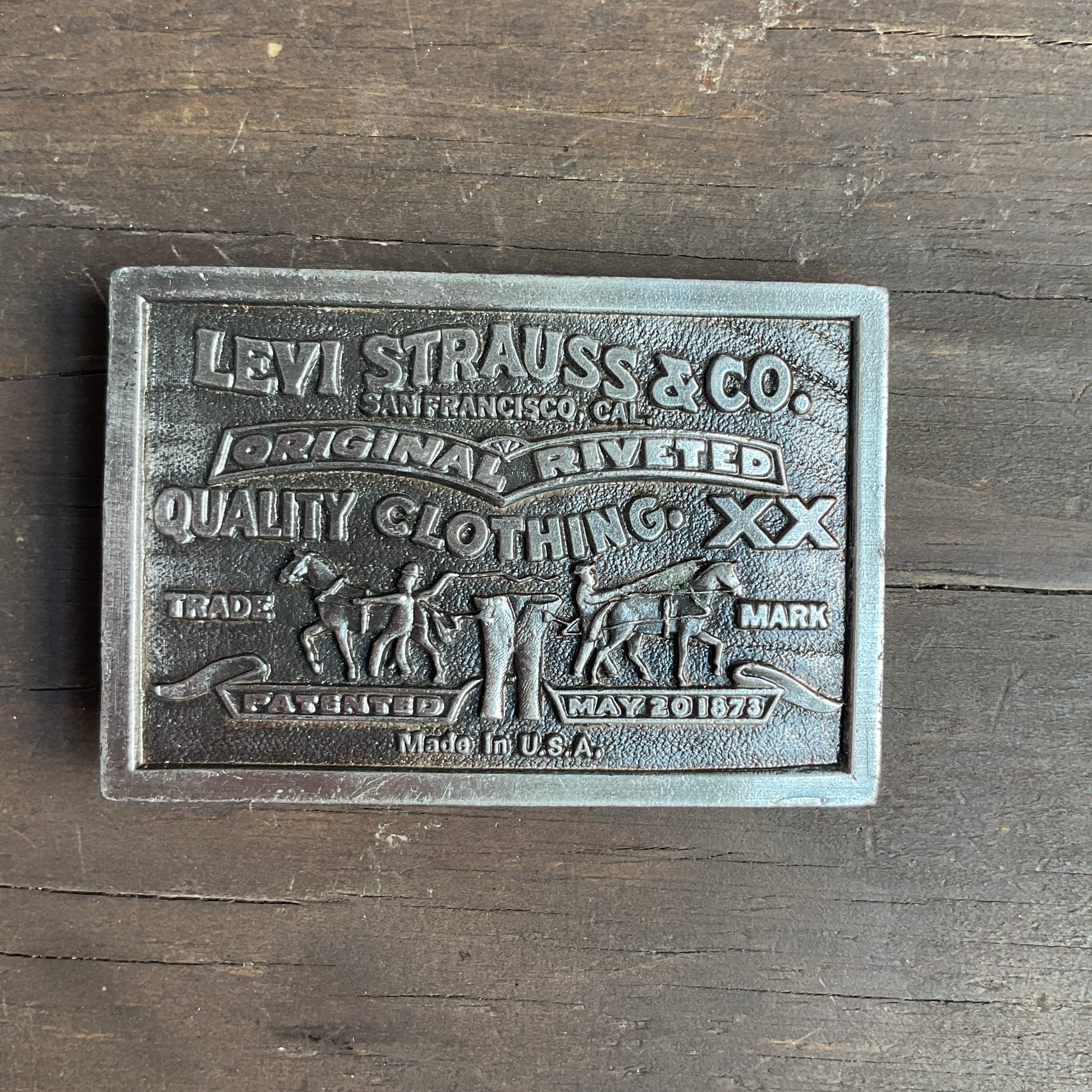 Vintage Levi's belt buckle, est. from the 1970s. In excellent condition, made from brass. 4" across.