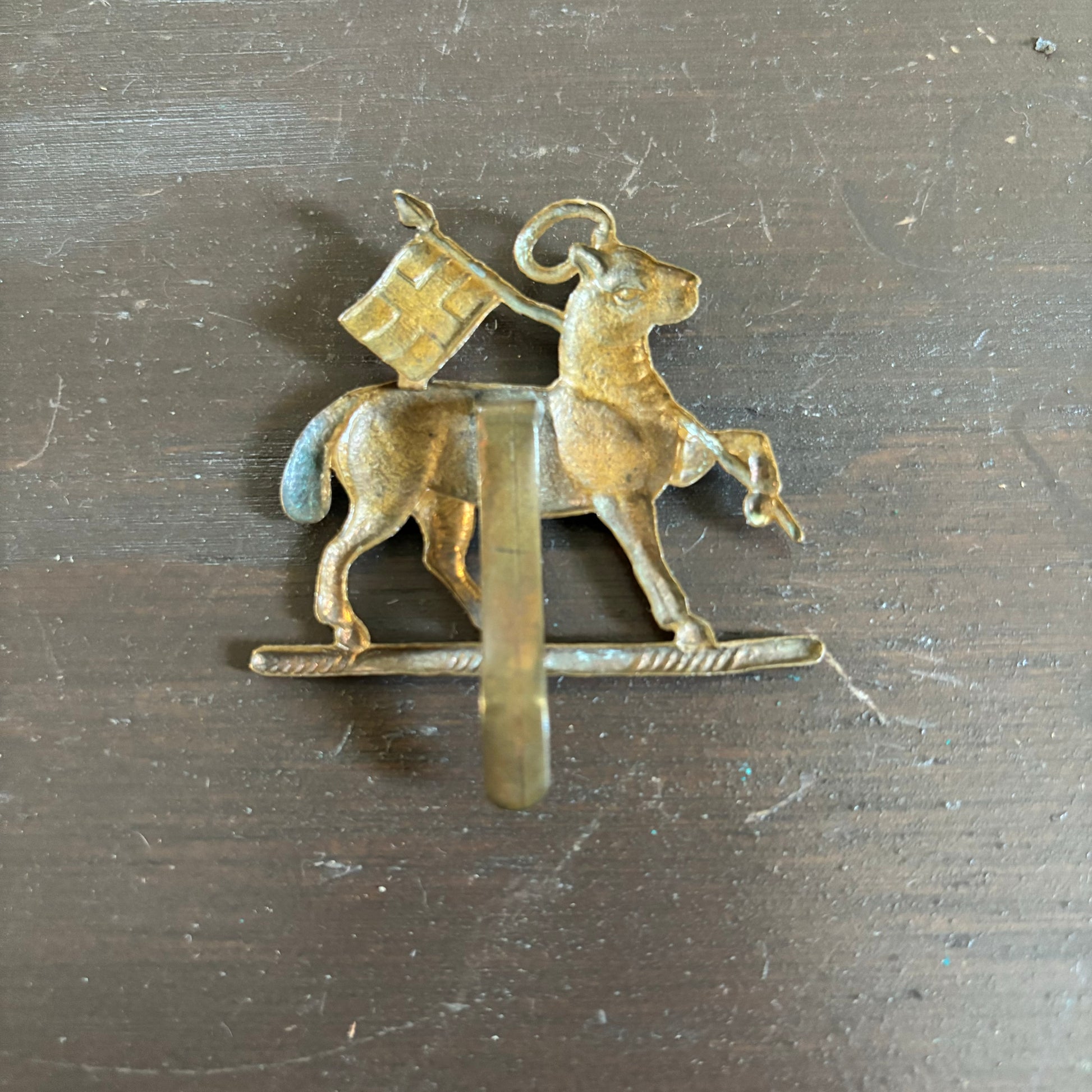 World War II era Queens Royal West Army badge featuring a horse carrying the English flag.