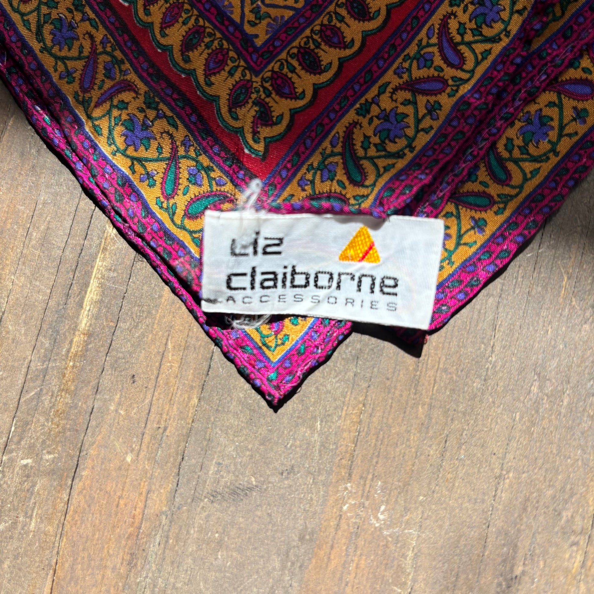 Colorful 100% silk scarf made by Liz Claiborne in good condition, a lovely pop of color for any outfit!