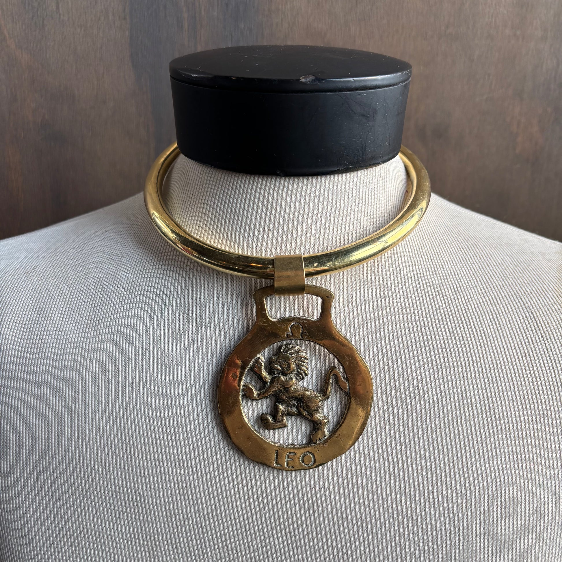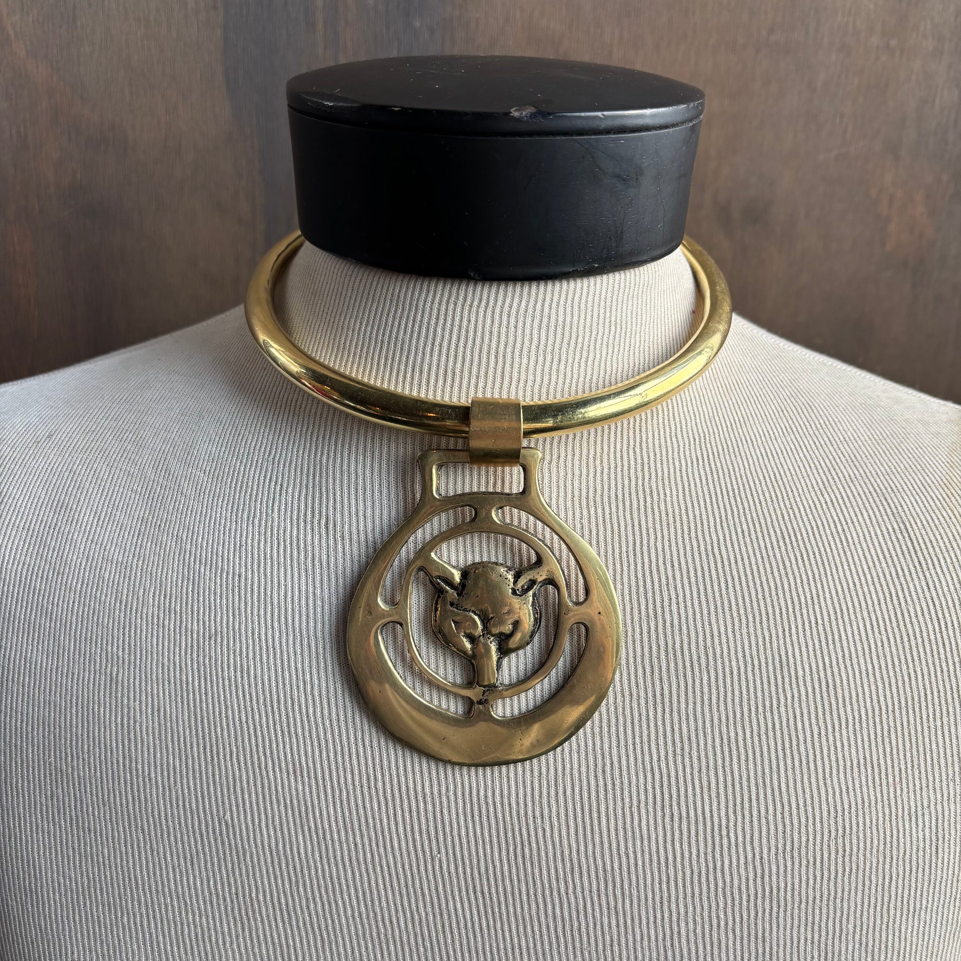 Vintage brass Mac Warman collar medallion necklaces in 3 styles - horse, wolf and lion.