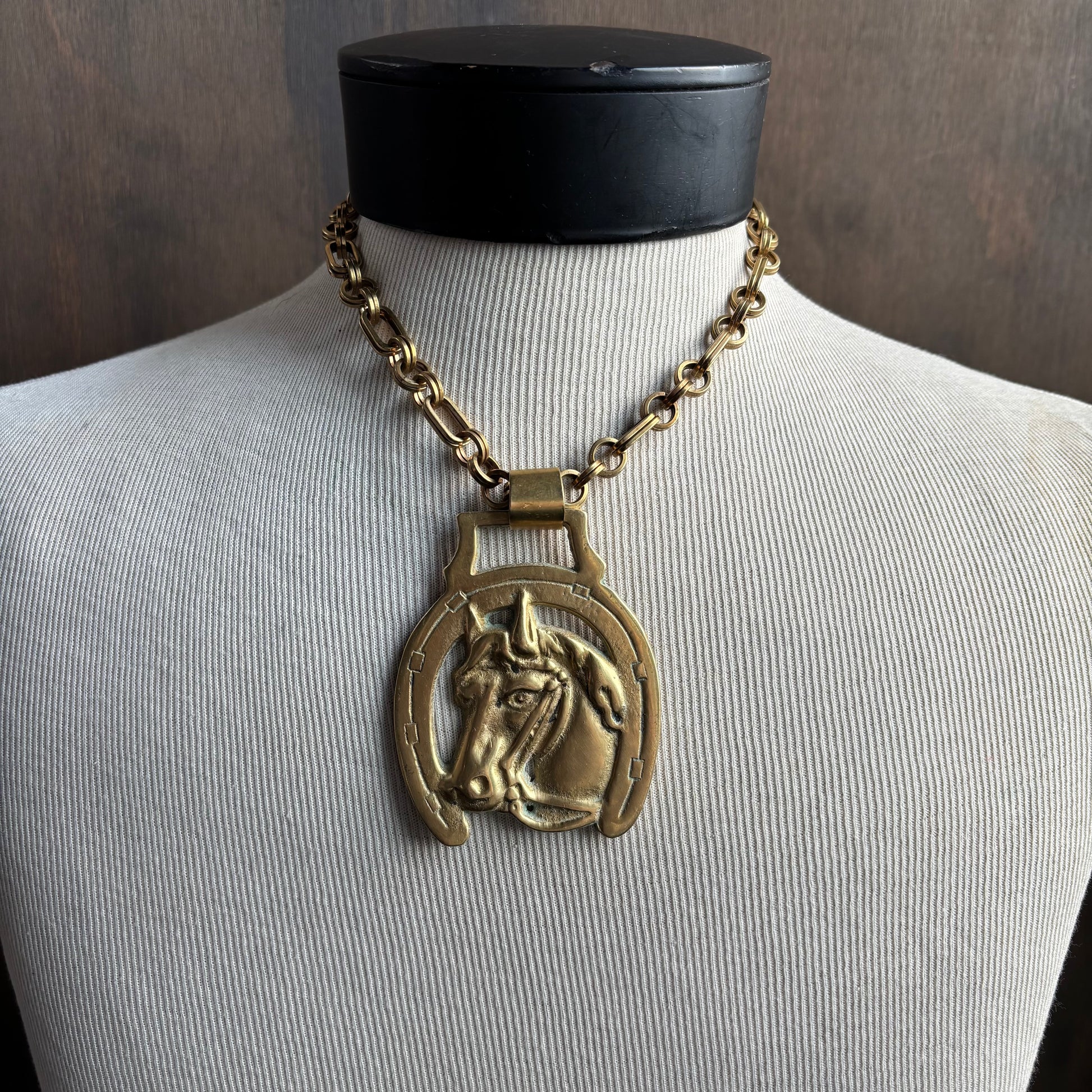 Vintage brass Mac Warman rare medallion necklaces in 3 different style - sun, horseshoes and horse head