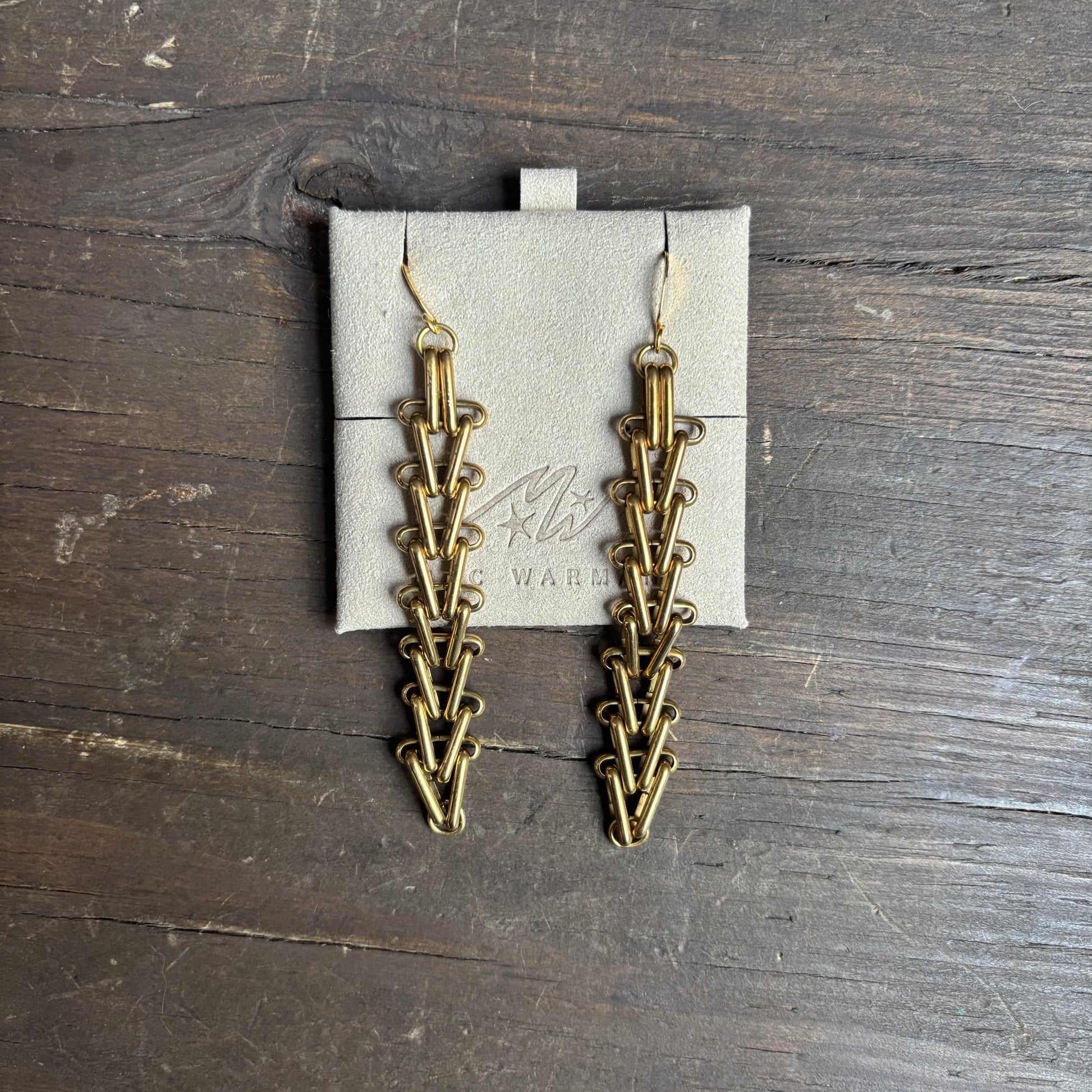 Mac Warman vintage brass chunky chain earrings featuring a unique chunky V-shaped chain.