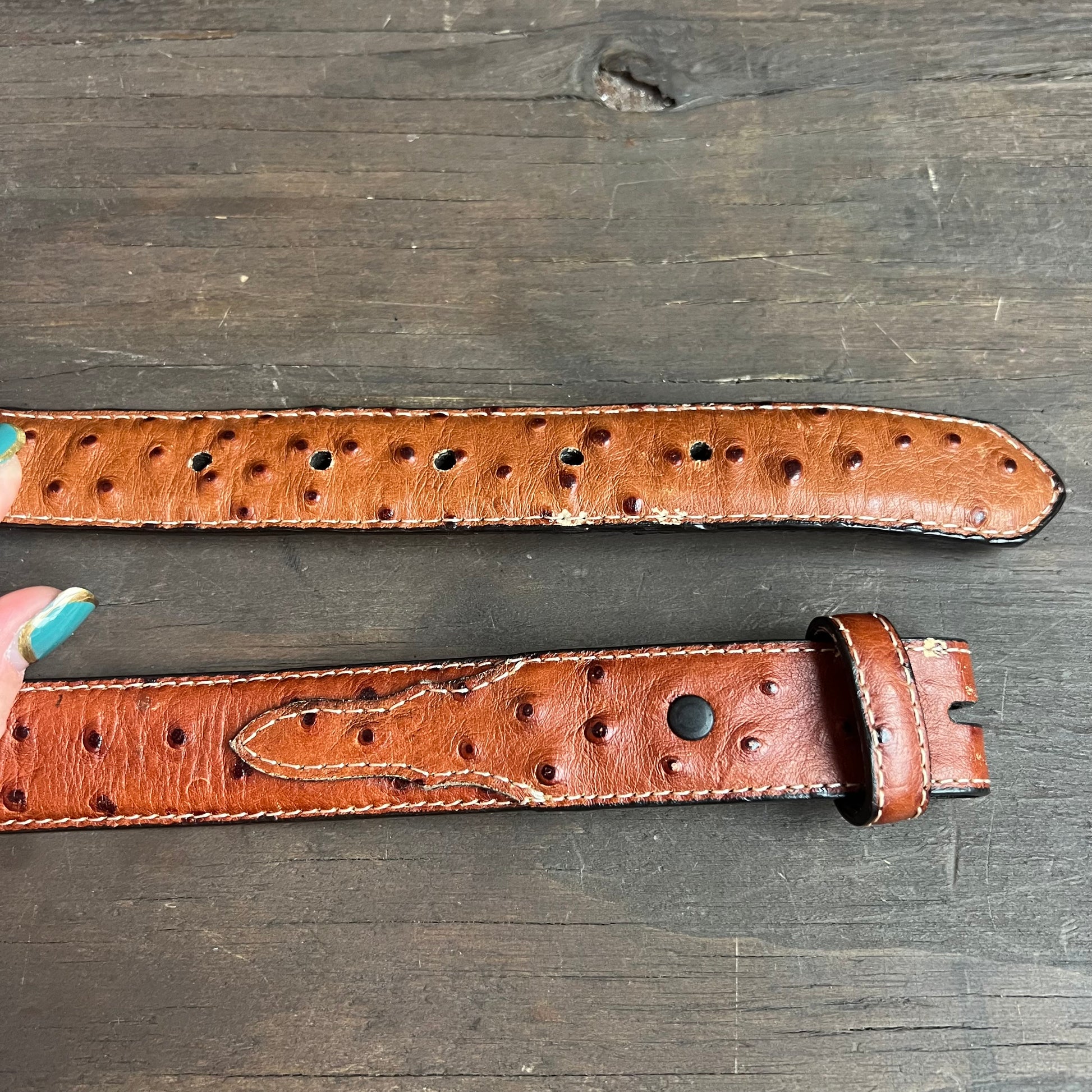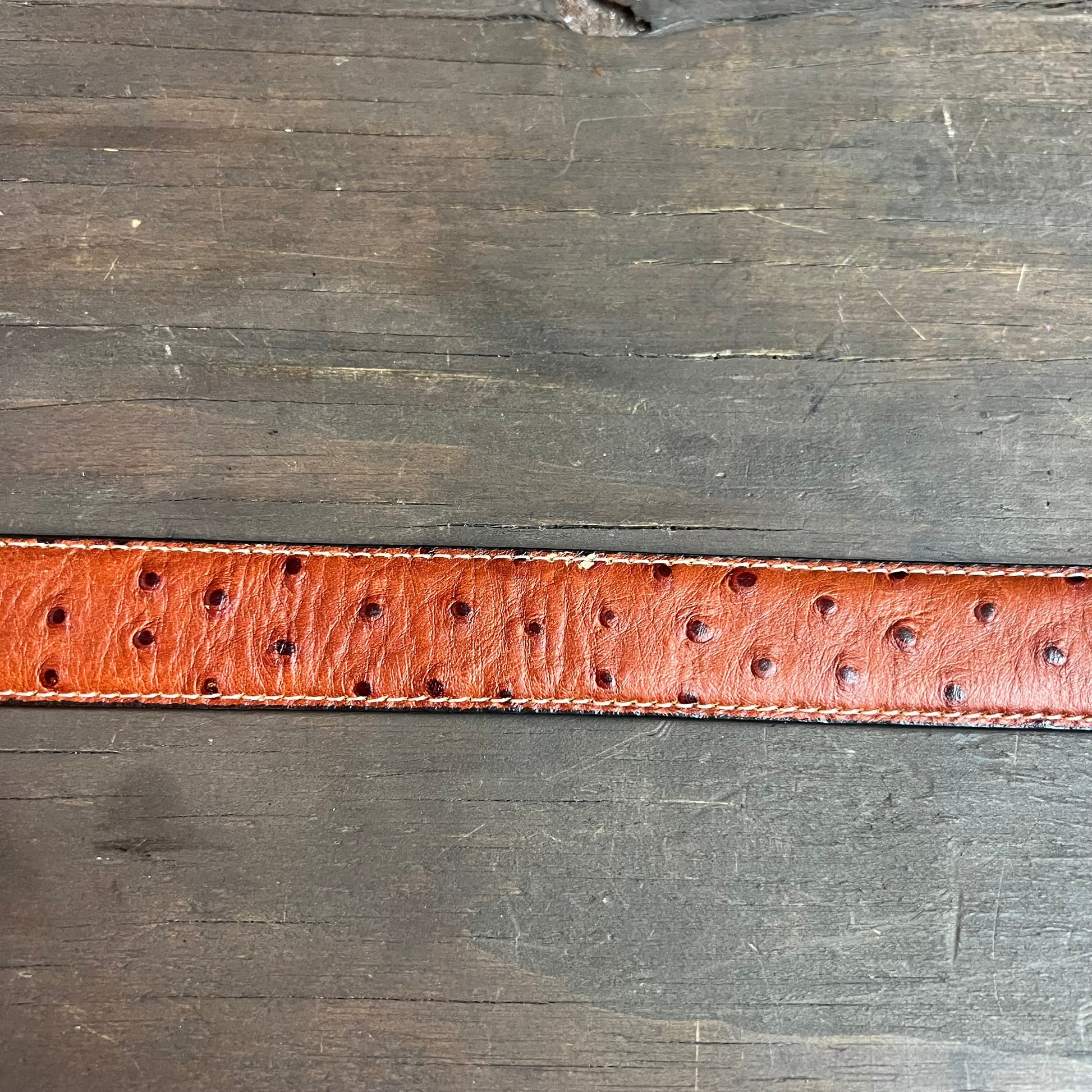 Adorable faux ostrich skin belt, made from genuine leather.