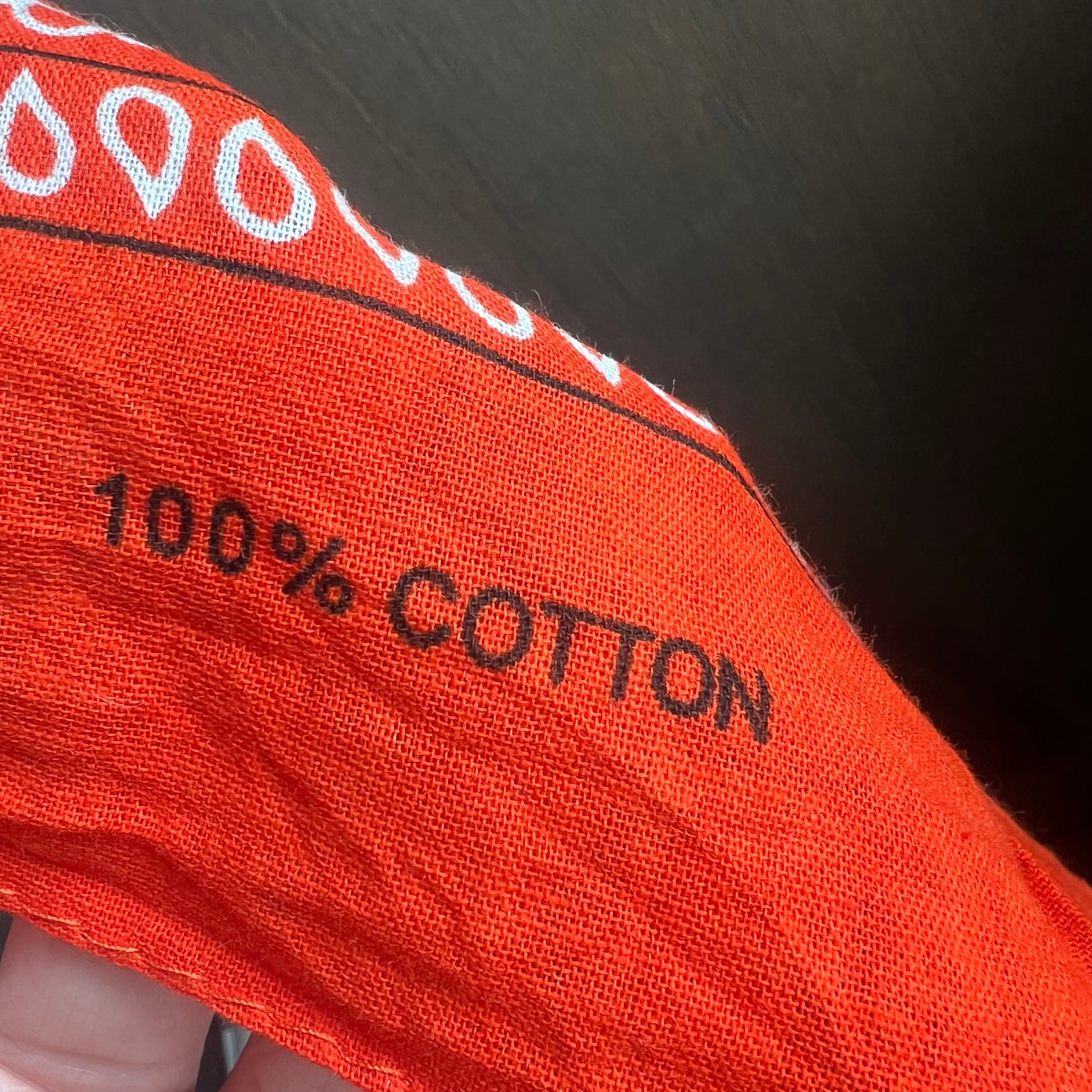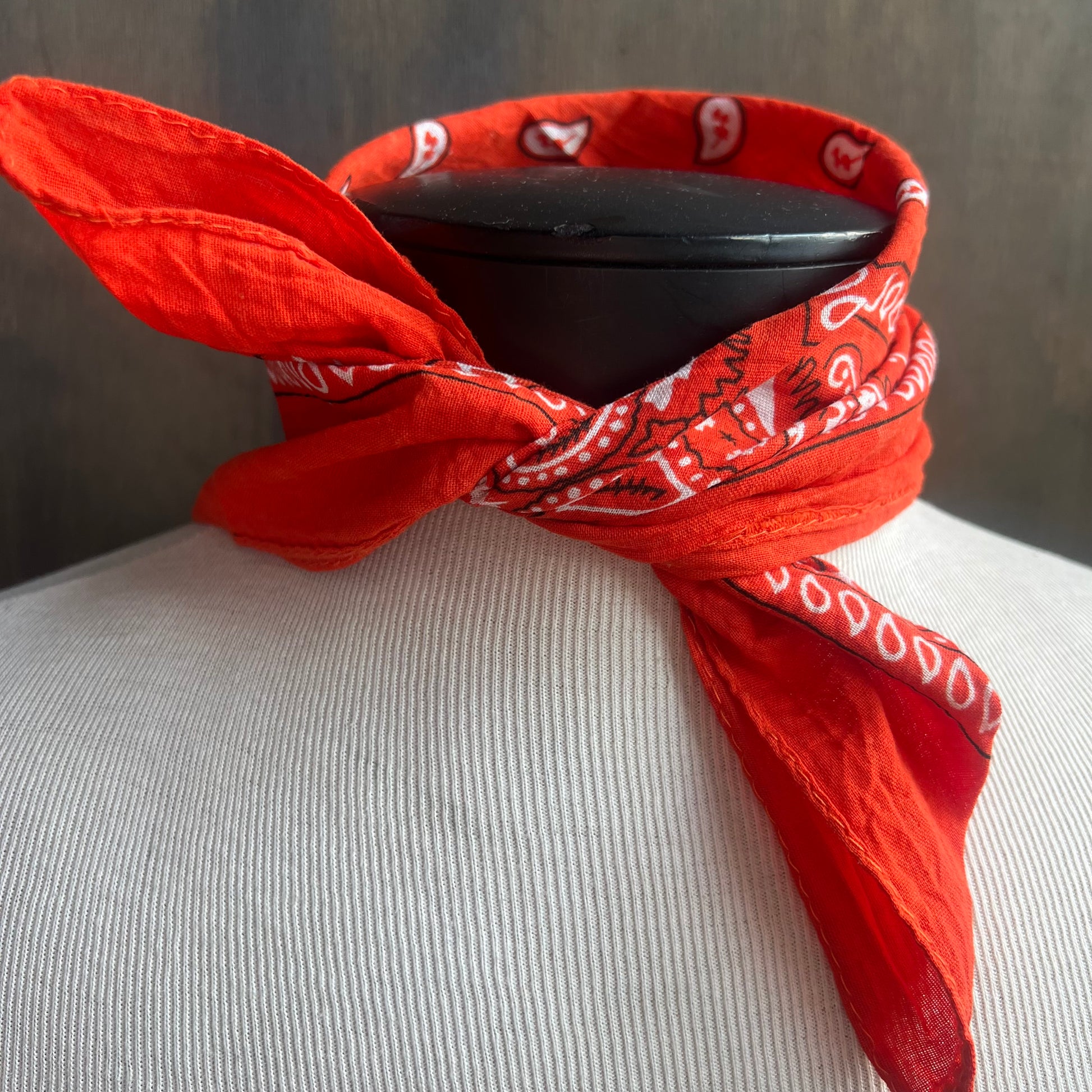 Orange western style bandana. 100% cotton, in great condition. 20” by 20”.