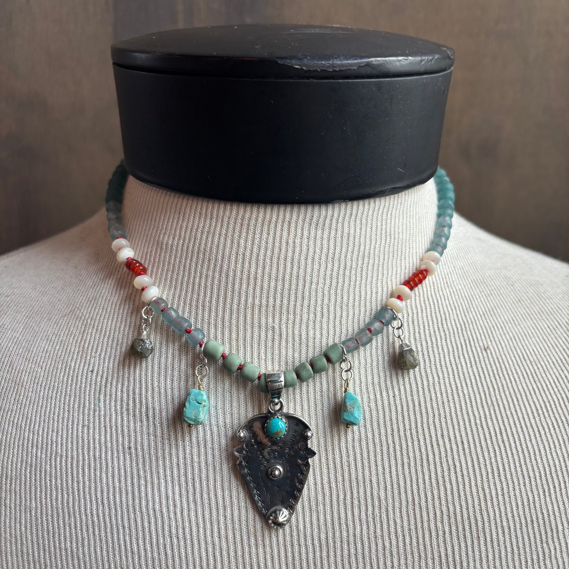 Handmade in Chicago, IL by designer Ostrich Moon. Each piece is made with love using semi-precious gemstones, raw metals, 100% pure silk, antique and handmade charms, and a variety of other collected treasures.