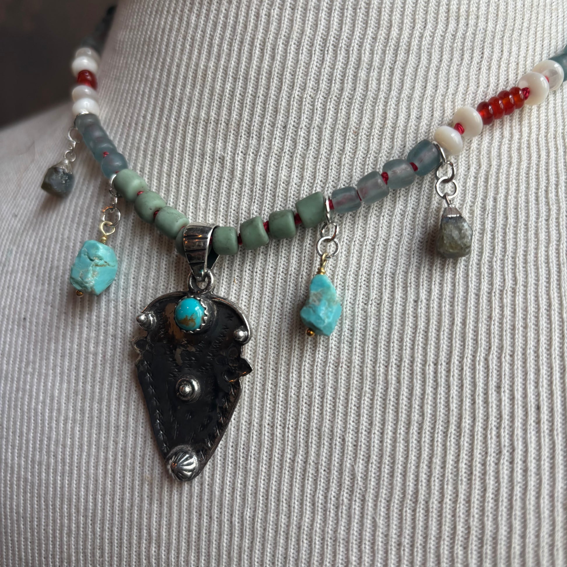 Charms - sterling silver pendant with turquoise, turquoise nuggets, labradorite nuggets