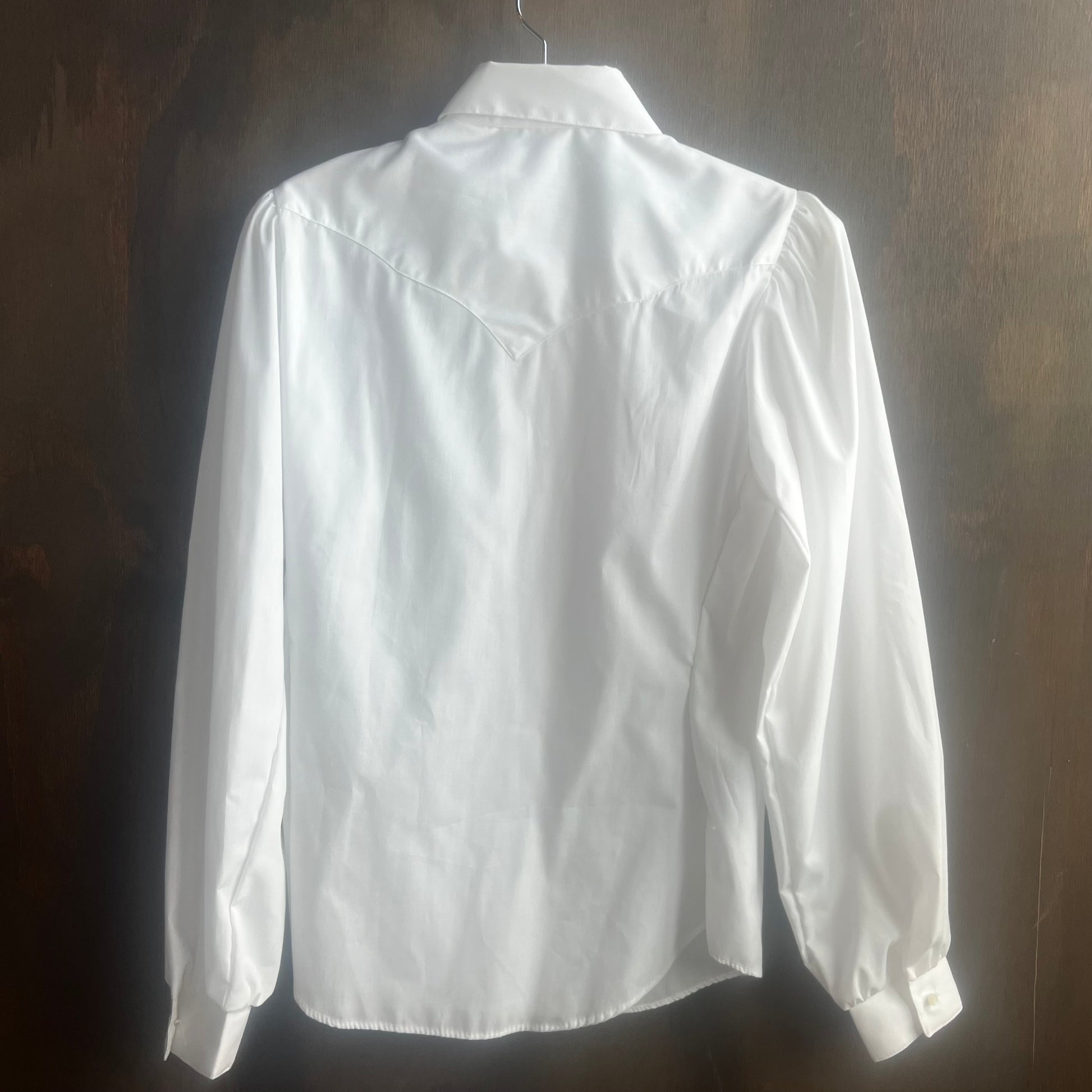 High quality, permanently pressed white button down with a nice collar and lace detailing on the front of the shirt. In excellent condition. Size S.