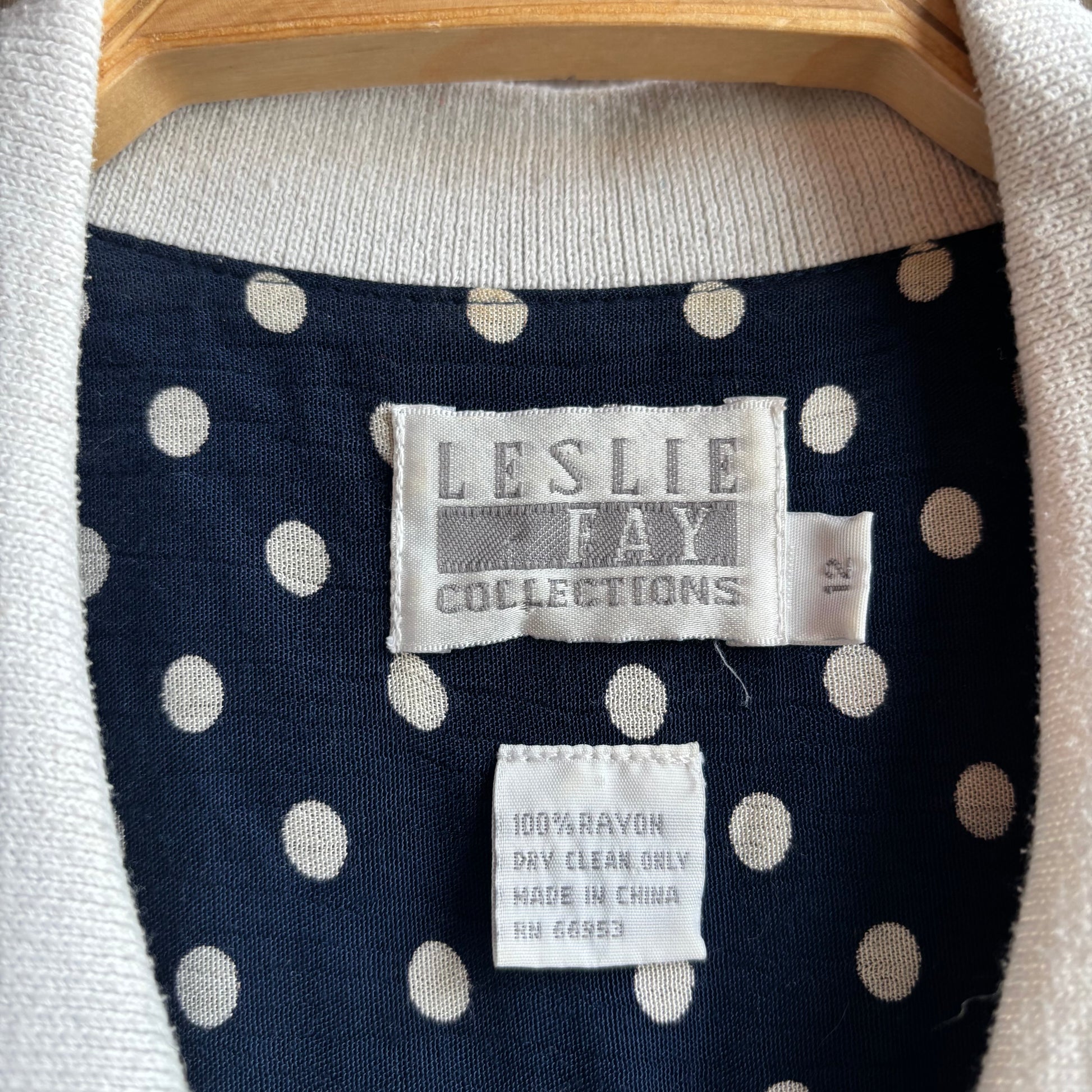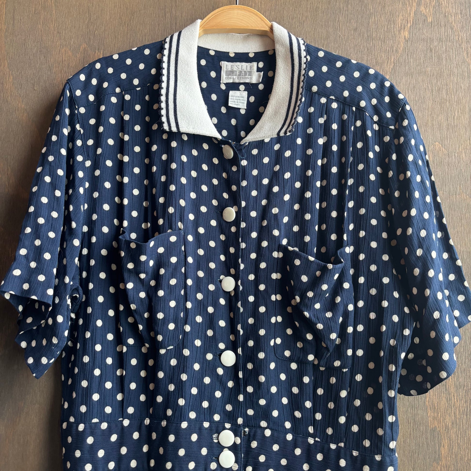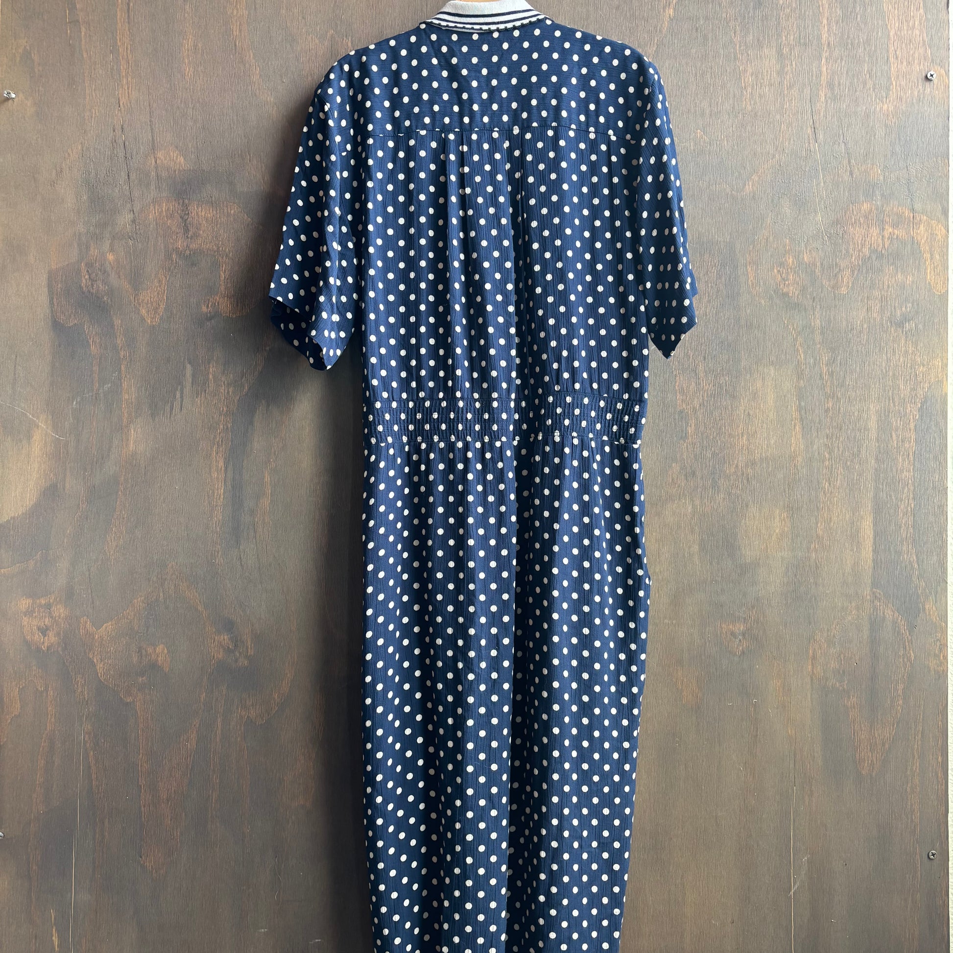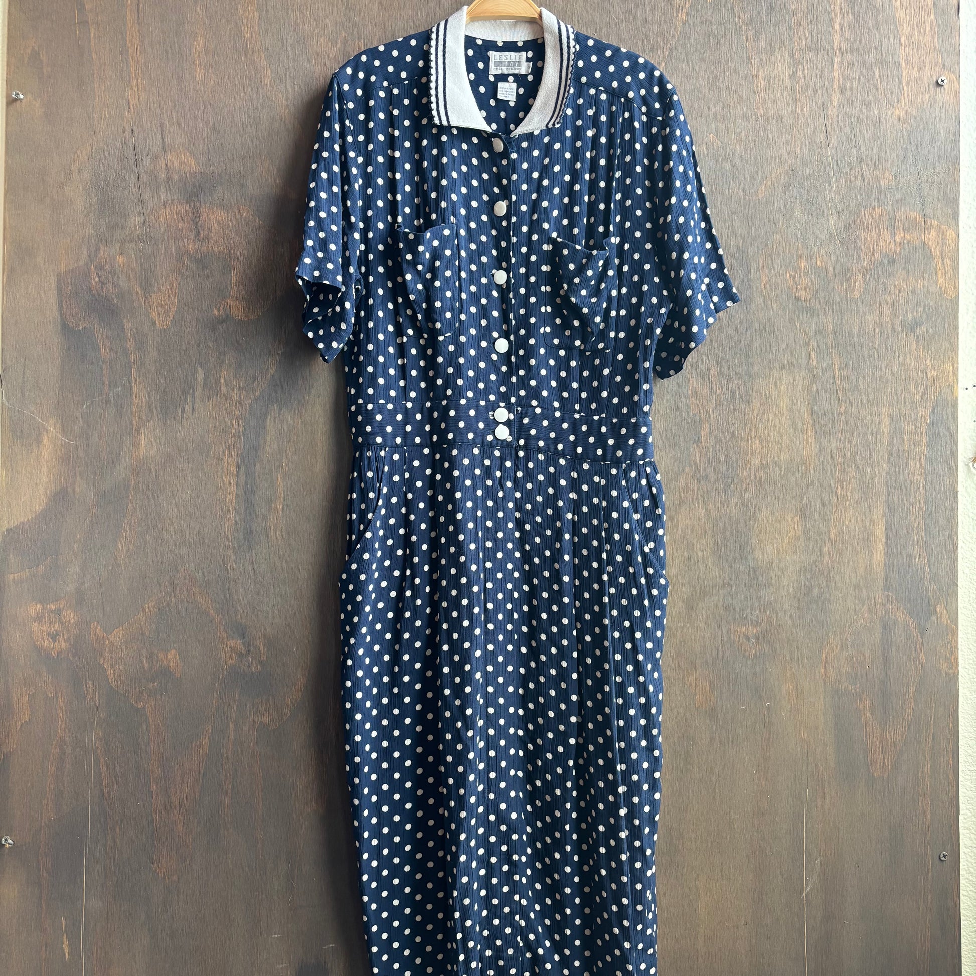 The dress your second grade teacher were in the 90s, adorable navy polkadot dress with white collar, size 12