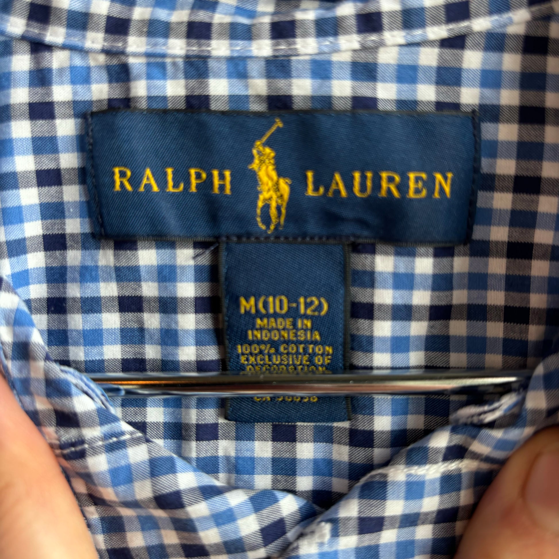 Beautiful Ralph Lauren blue check kids button up, perfect for a special occasion. Size medium fits size 10 to 12, in great condition.