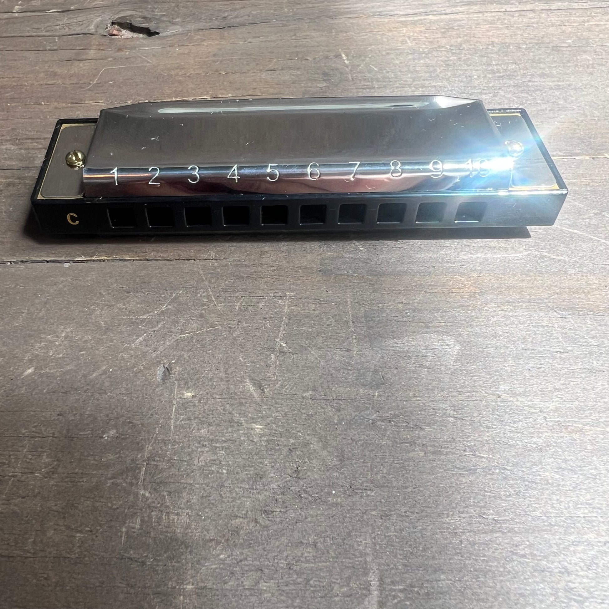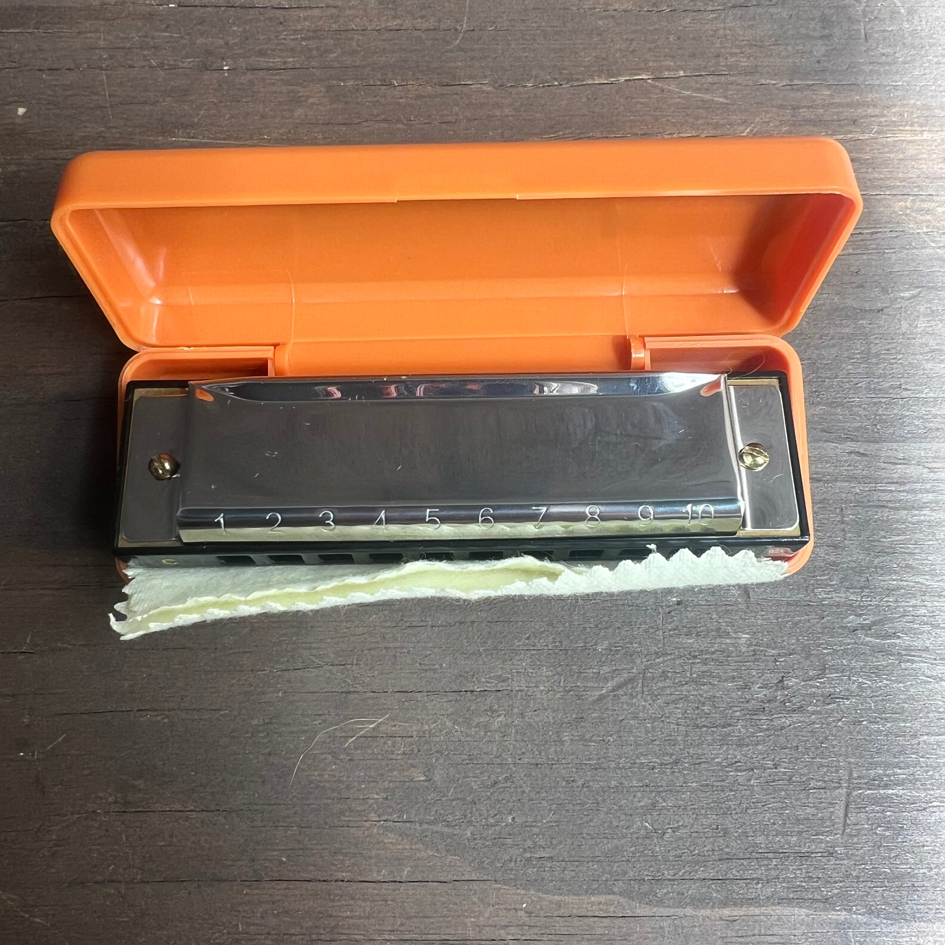 Vintage harmonica in new condition. Box was unopened and unused. In excellent condition. Comes with harmonica, carrying case, polishing cloth, and instruction sheet!