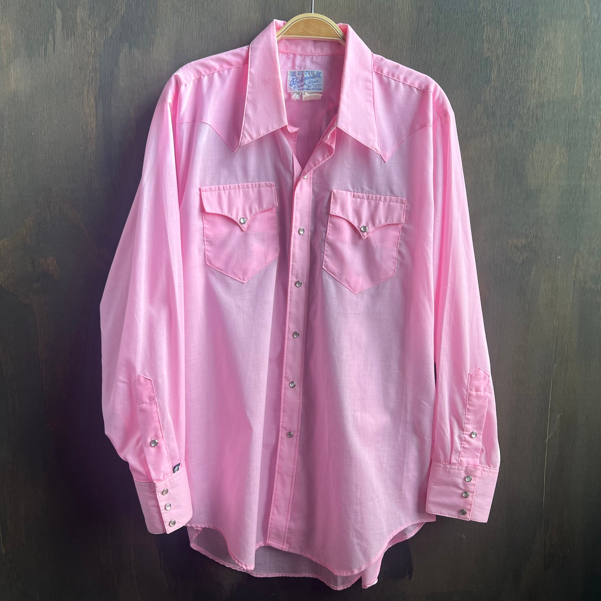 Pink Rockmount button down with pearl snap detail made locally in Denver, Colorado.