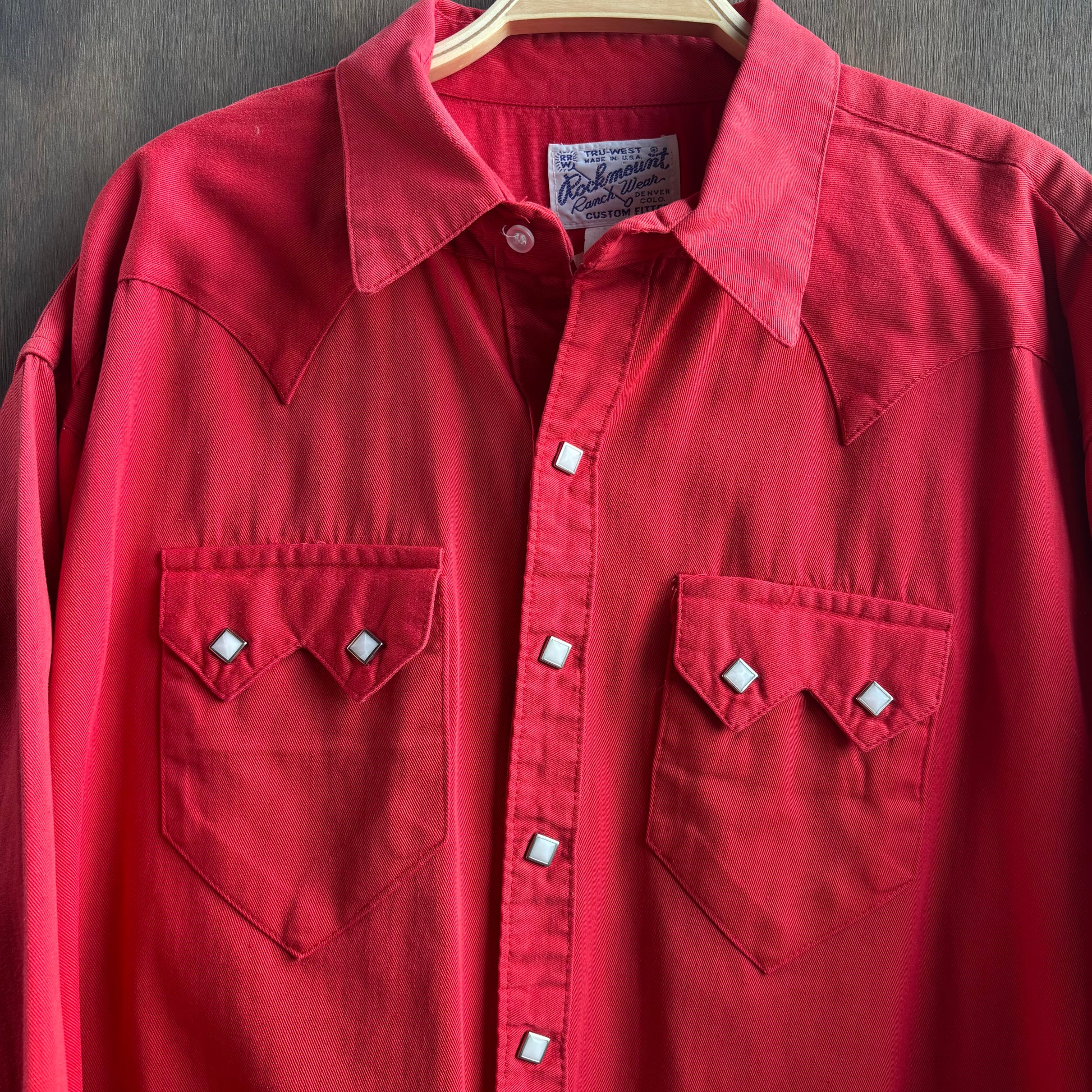 Great looking Rockmount red pearl snap button up with white diamond snaps, size XL in good condition, a great basic staple for your closet