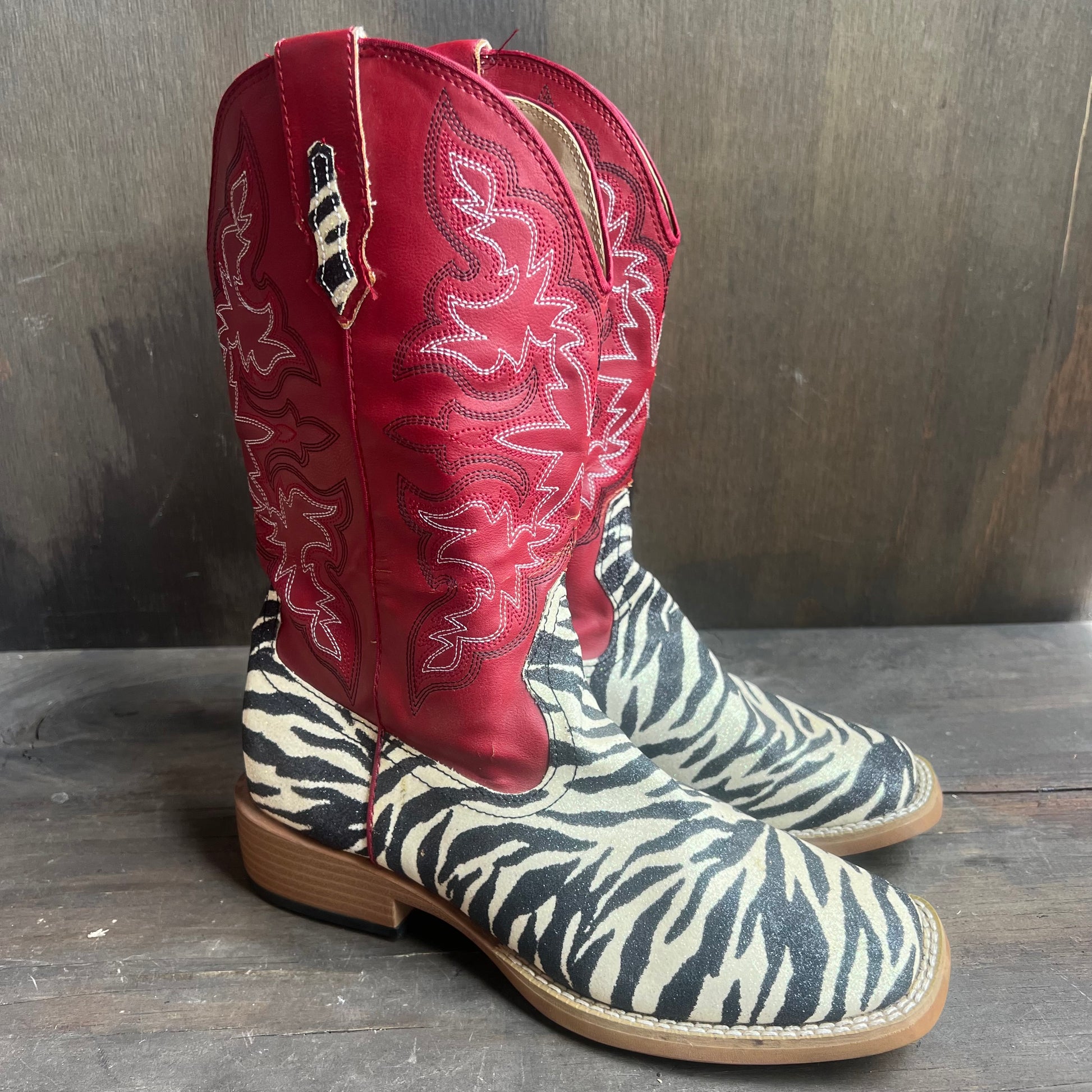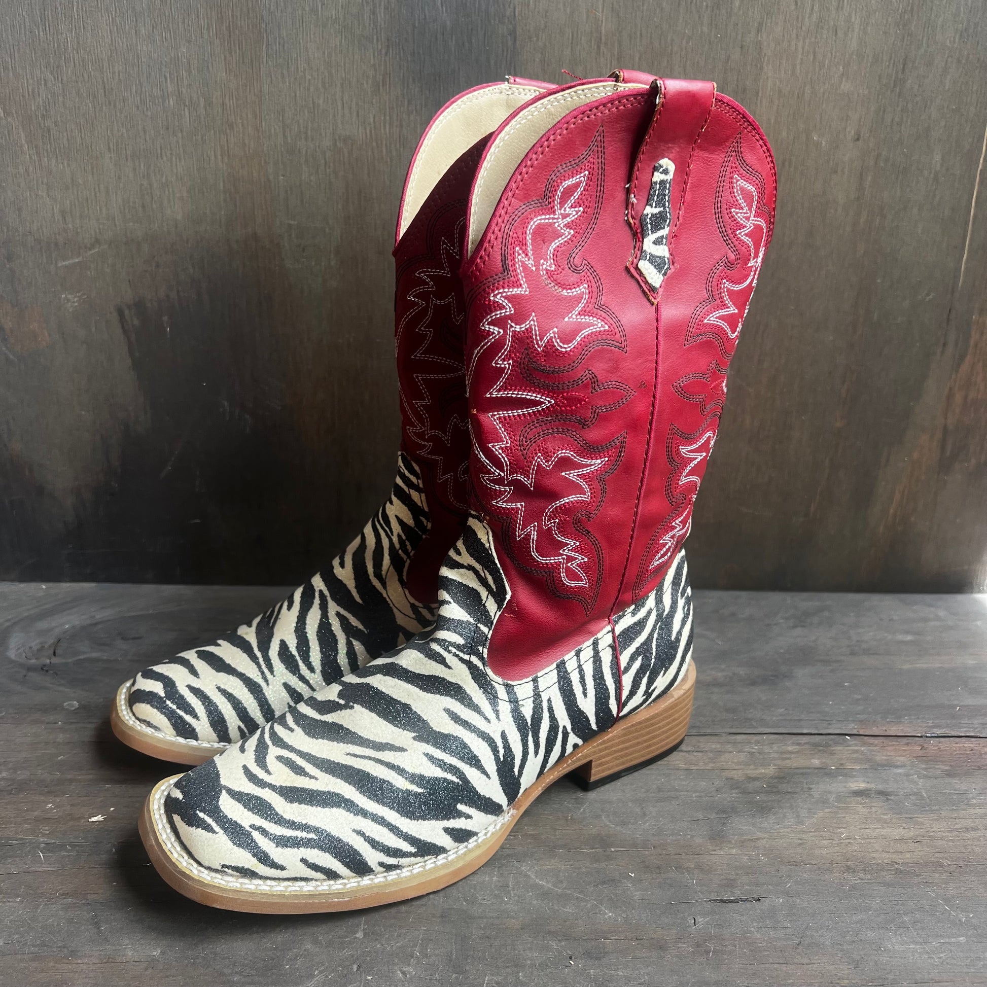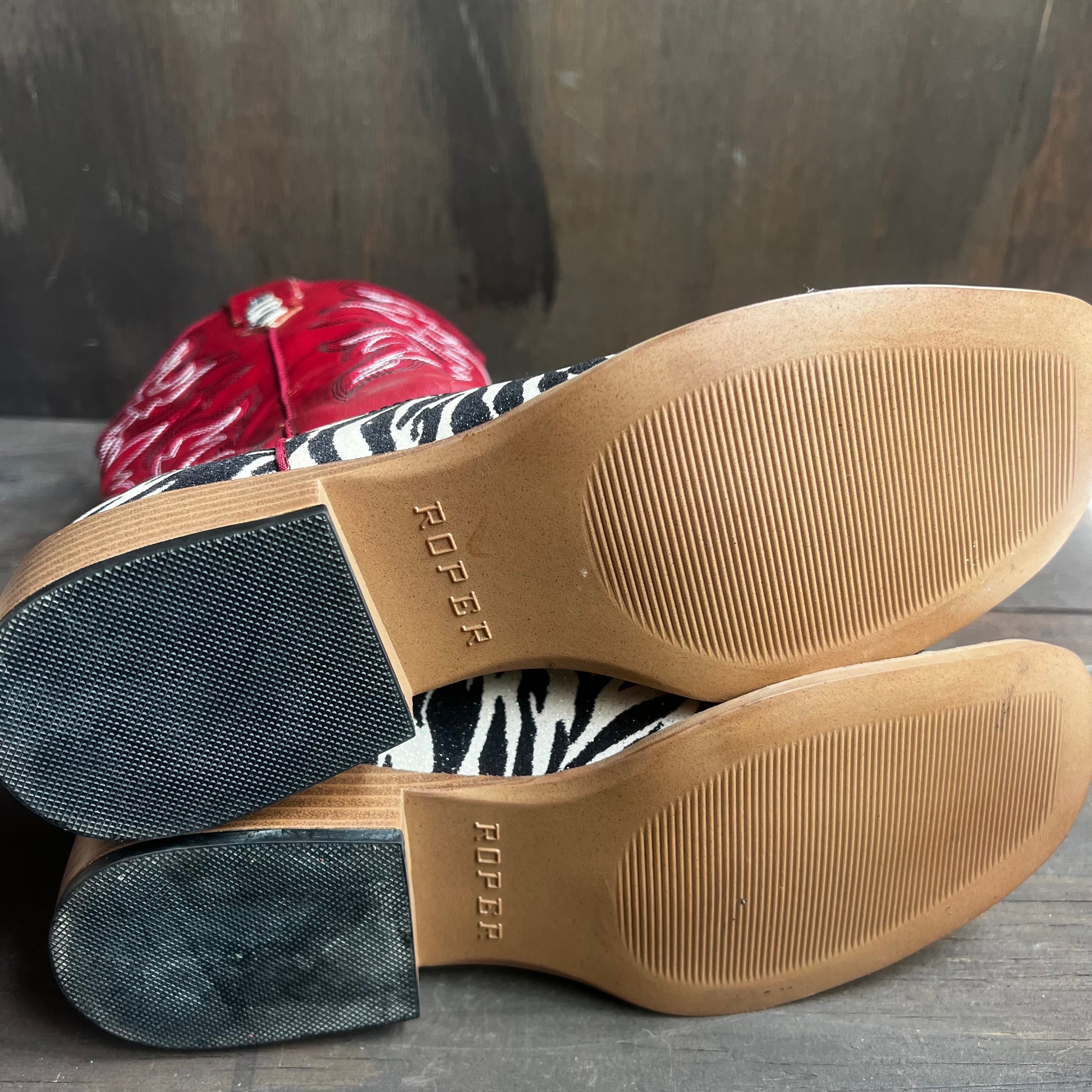 Roper Shimmery Zebra and Red Leather Boots
