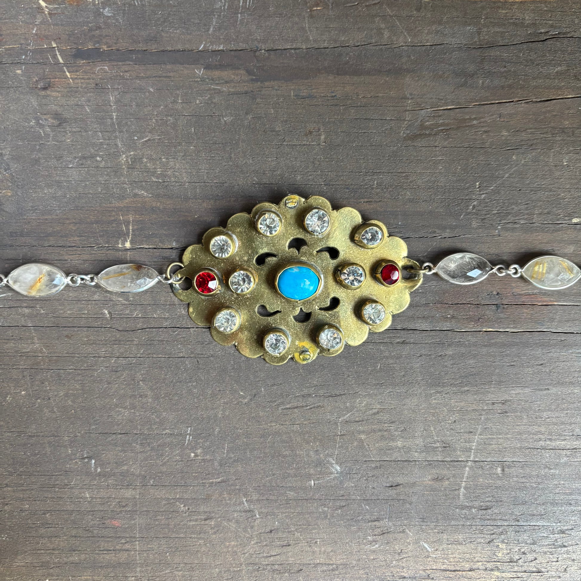 Stunning locally made Rose Rust Hat Bands are created from vintage Turkmen pendants, rutilated quartz stones and leather cord, each is totally unique and fully adjustable
