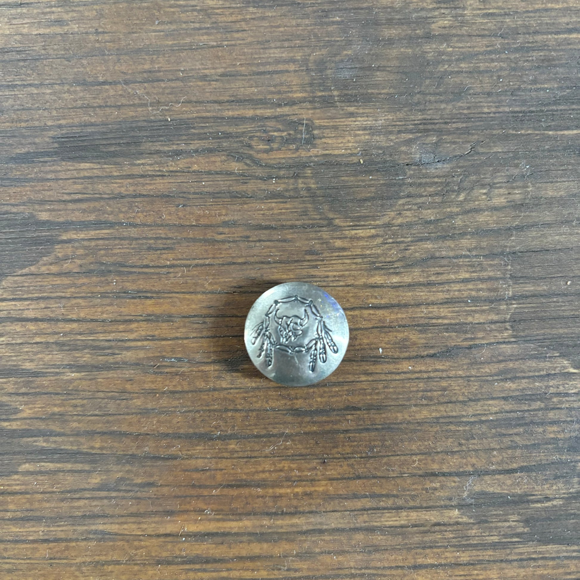 Beautiful set of 6 silver button covers featuring a buffalo skull and feather decoration on each. Change the look of any shirt with this set of button covers.