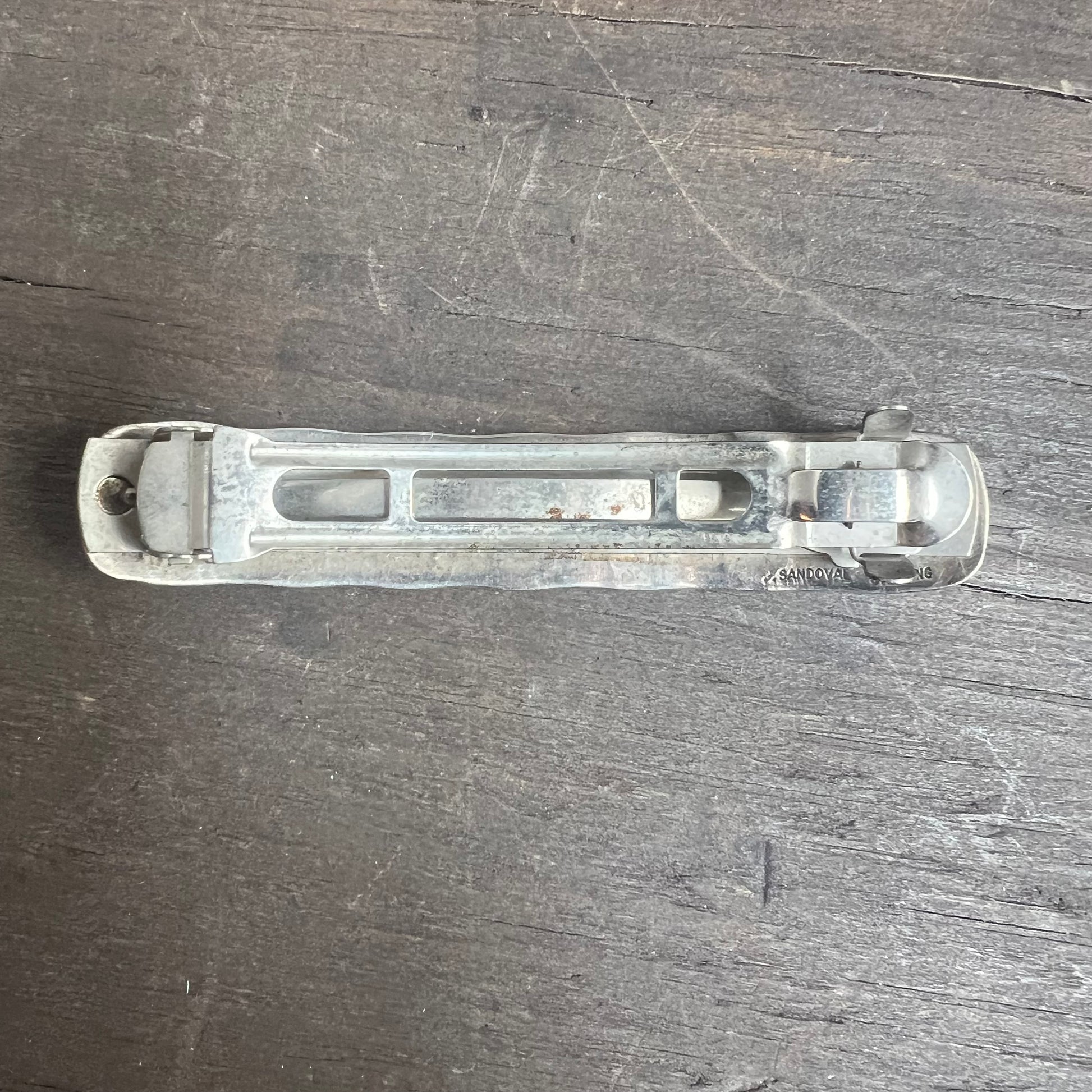 Beautiful sterling silver barrette. Southwestern inspired designs are engraved on the barrette. In excellent condition. See quarter for scale.