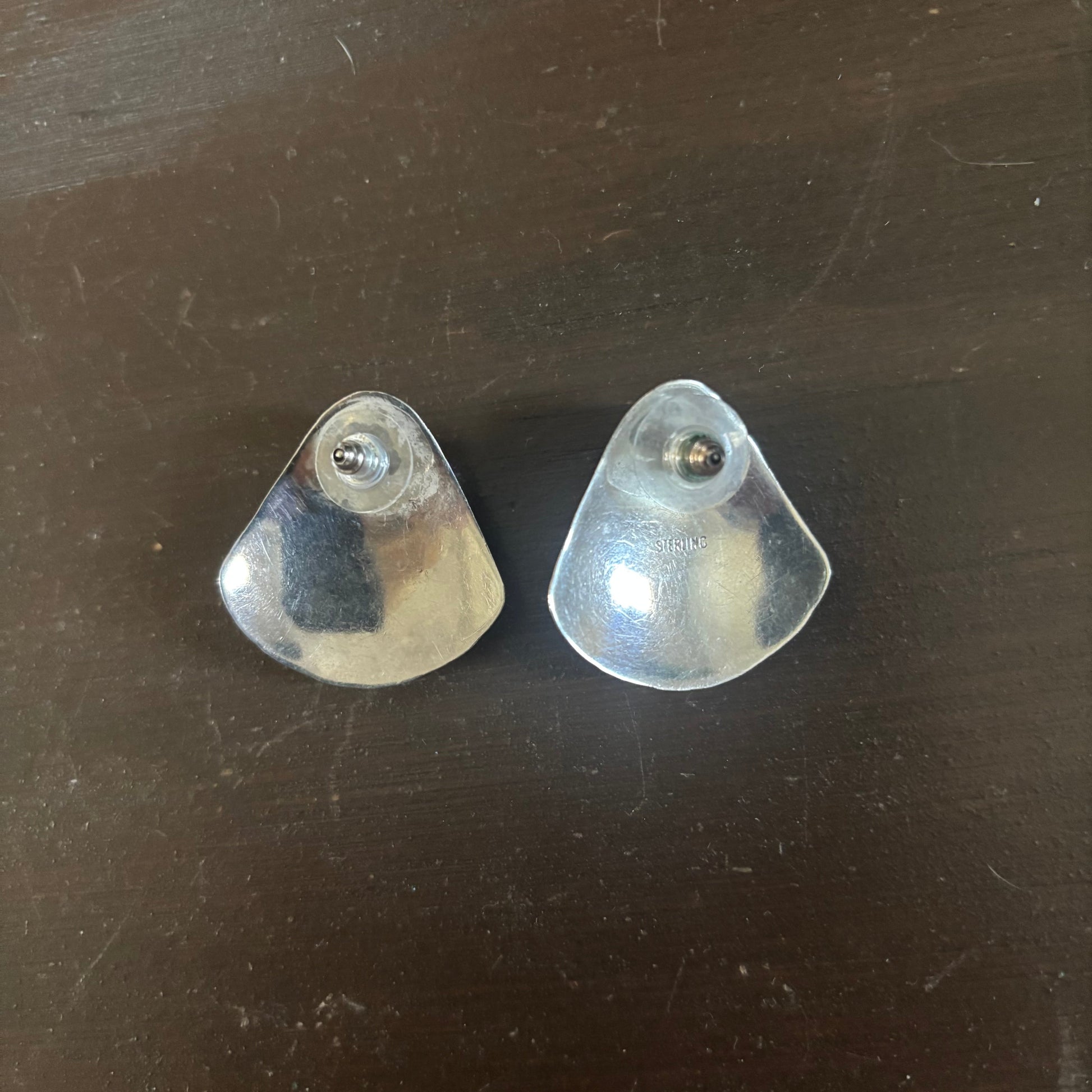 Beautiful rounded triangle shaped sterling silver opal earrings with post backing, in excellent condition