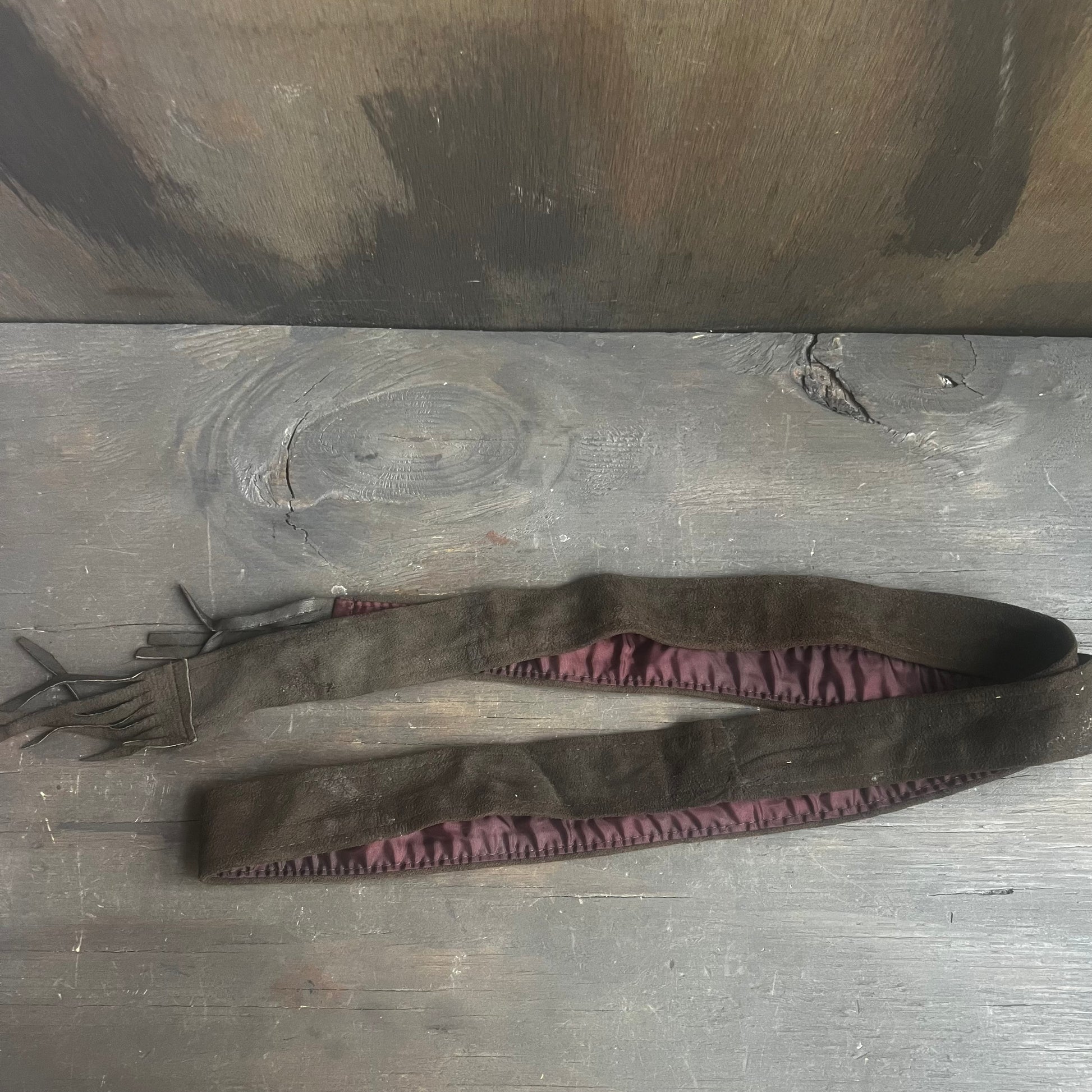 Vintage fringe belt made from suede. In good vintage condition, some wear with time. 65” long.