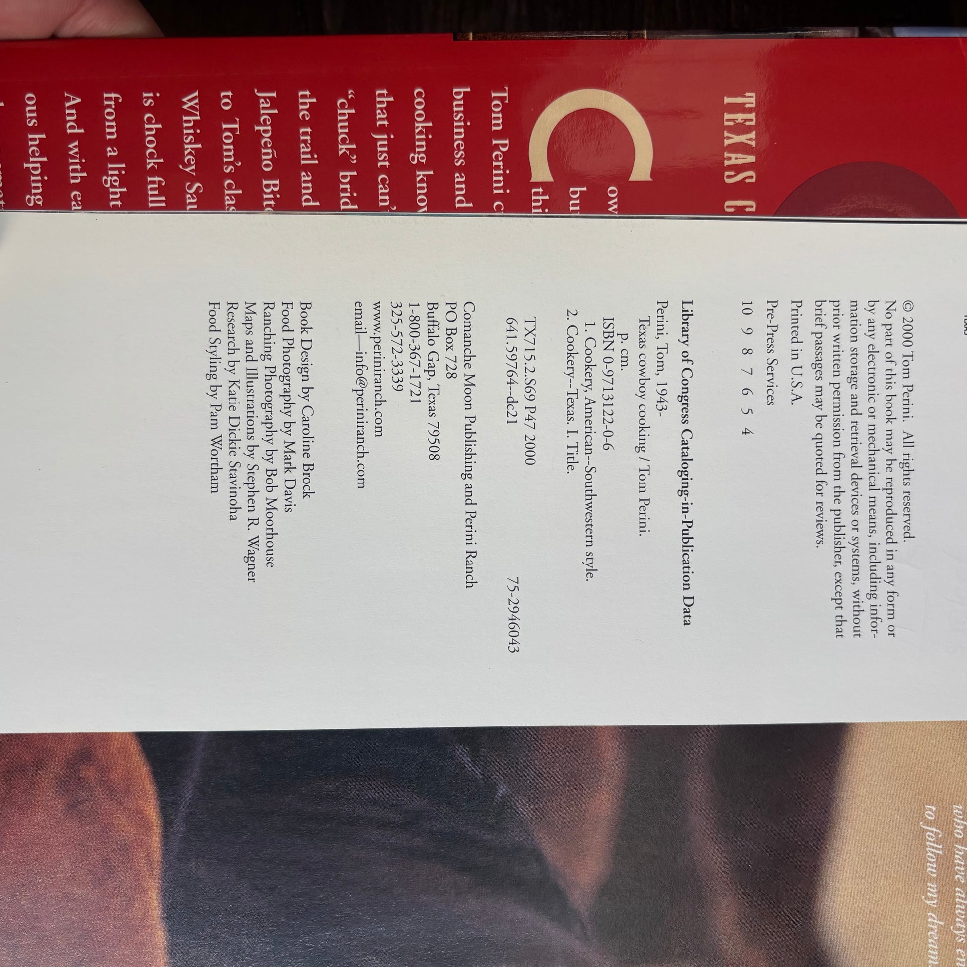 Hardcover copy of Texas Cowboy Cooking by Tom Perini in great condition, with original dust cover