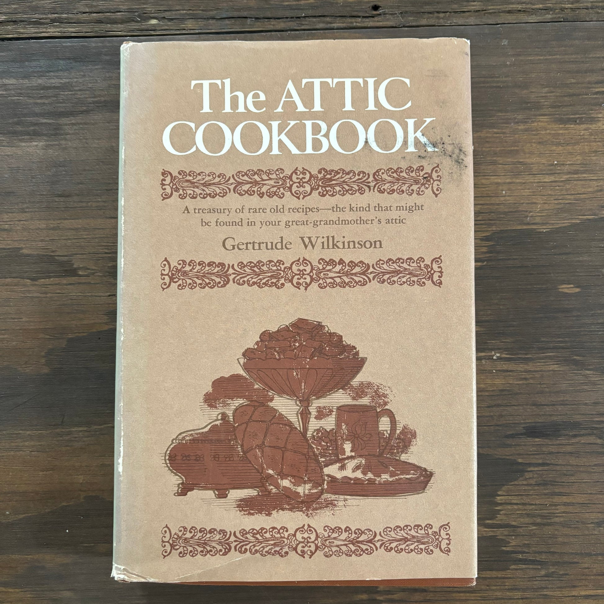 Beautiful first edition hardback copy of The Attic Cookbook, a treasury of rare old recipes – the kind that might be found in your great grandmother’s attic, by Gertrude Wilkinson.