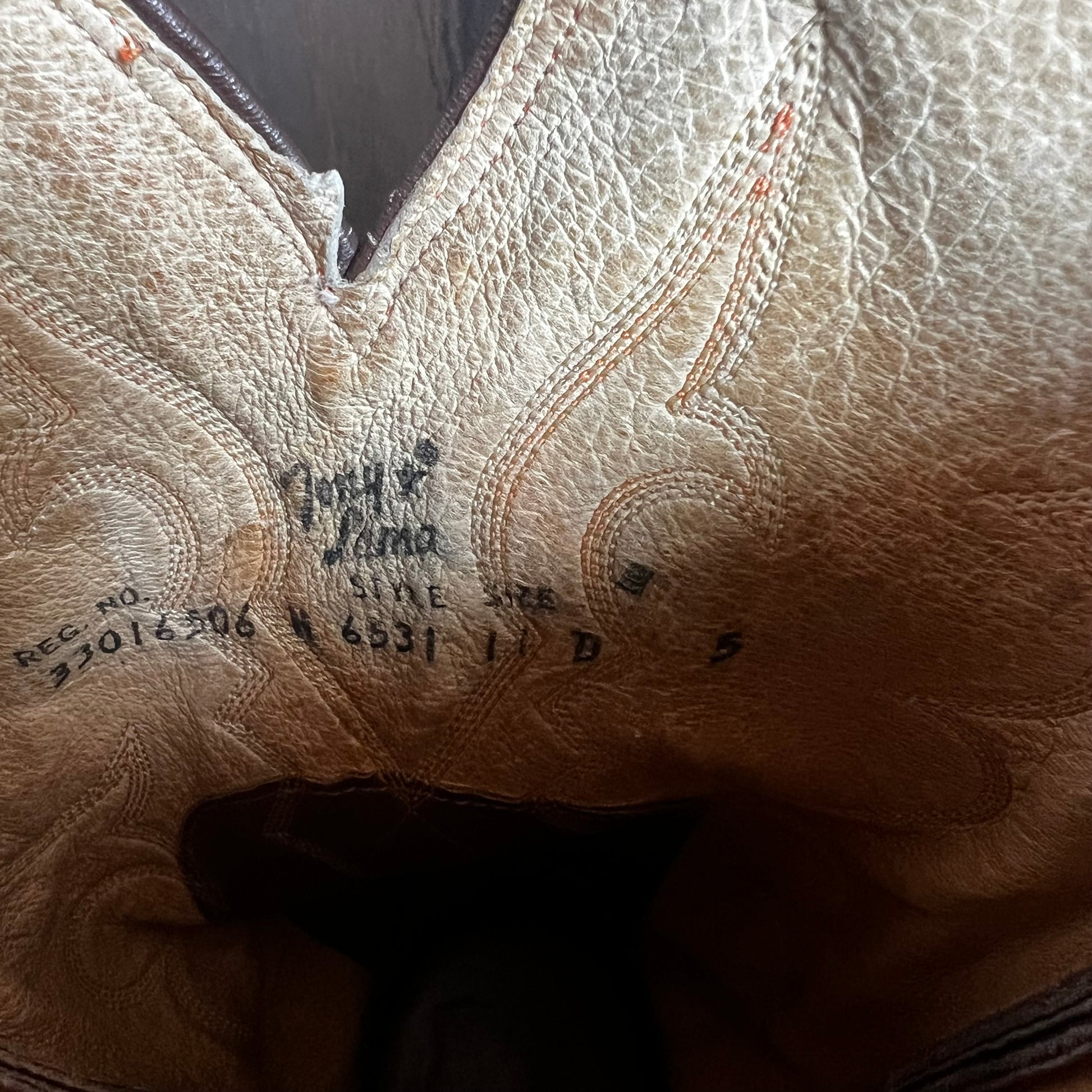 Pretty and classic light brown cowboy boots from Tony Lama. Slightly worn from love and time with heel scuffing, otherwise in good vintage condition. Men’s 11, women’s 12.5.