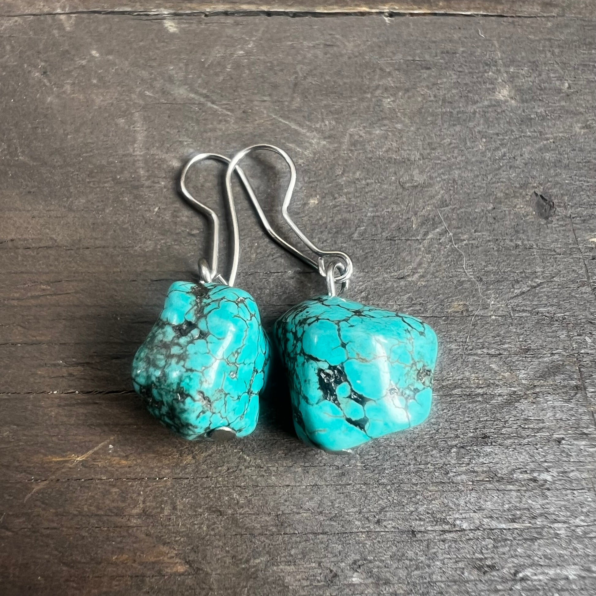 Gorgeous silver earrings with two turquoise stones. In excellent condition.