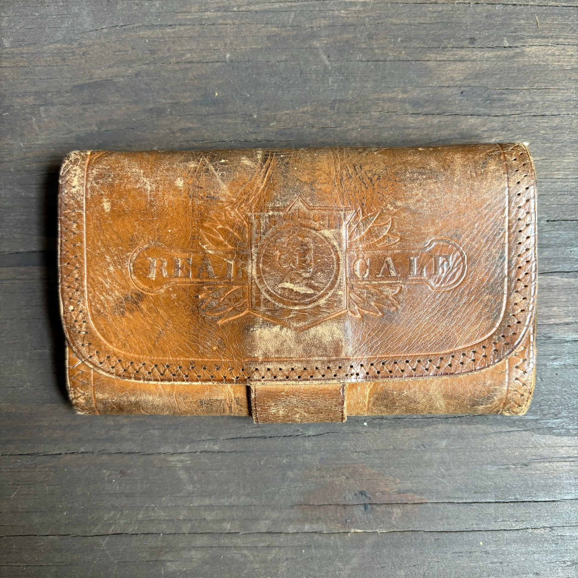 Vintage leather trifold wallet with multiple interior pockets, marked real calf. Beautiful design in good vintage condition