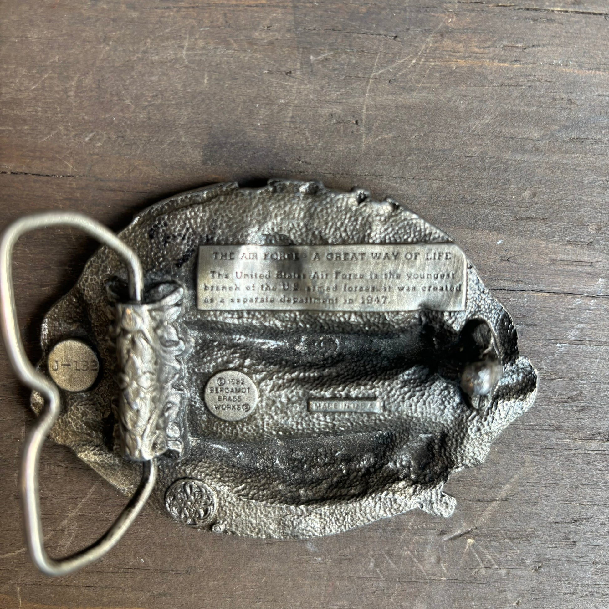 Limited edition, US Air Force belt buckle made in 1982 by Bergmont Brass Works in the USA.