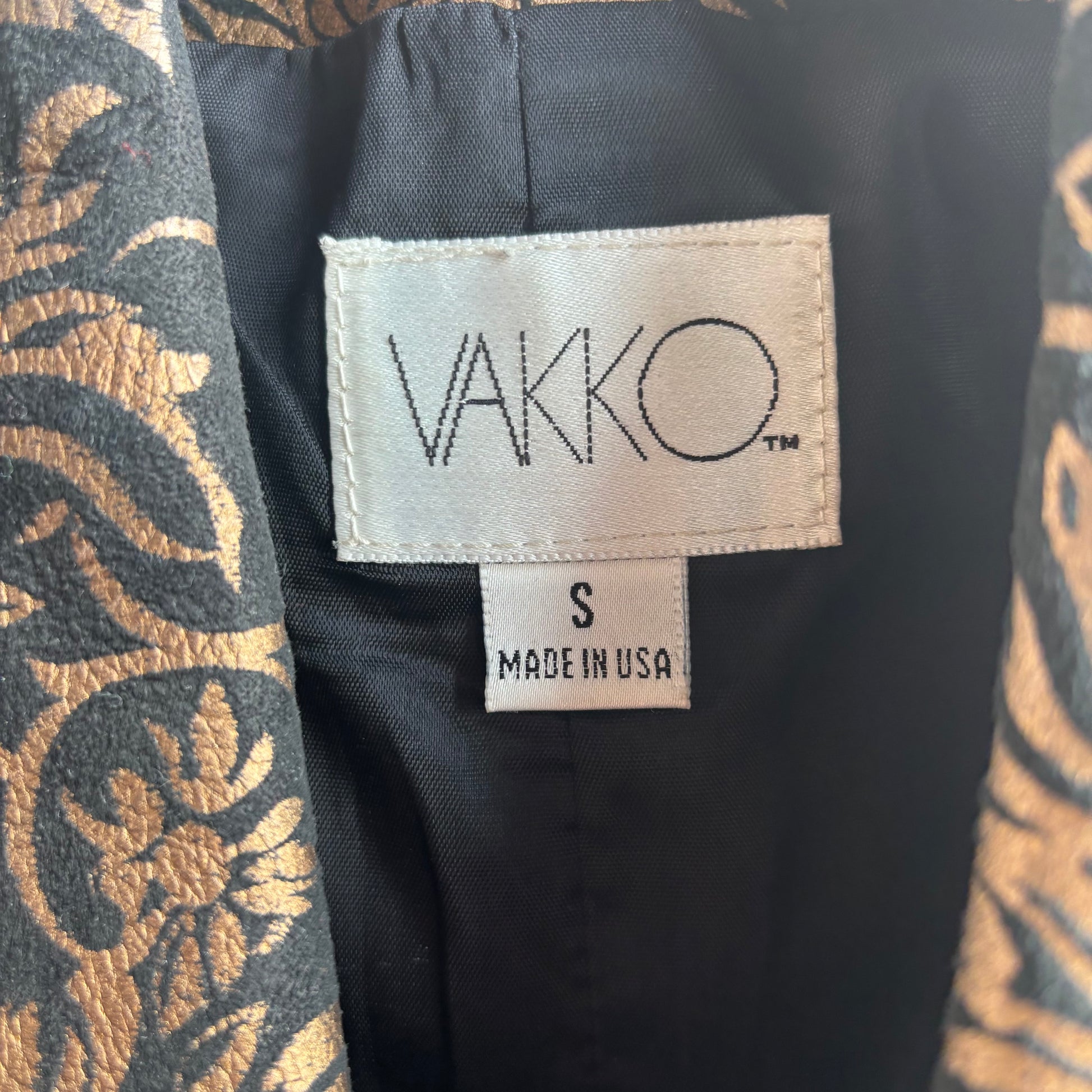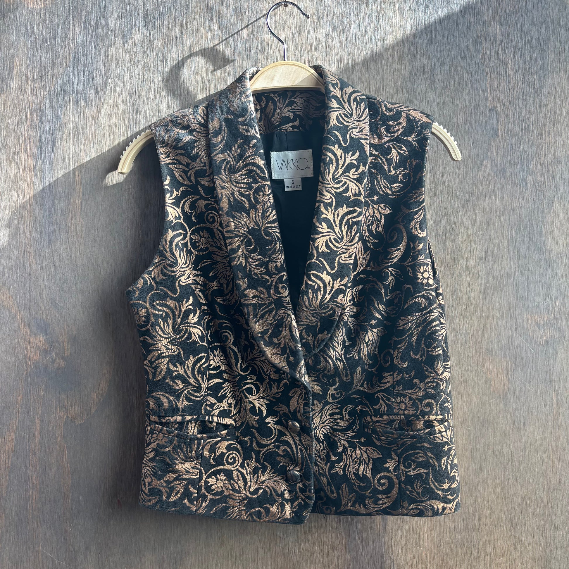 Pretty and unique VAakko leather vest with gold pattern, fully lined, made in the USA, size S