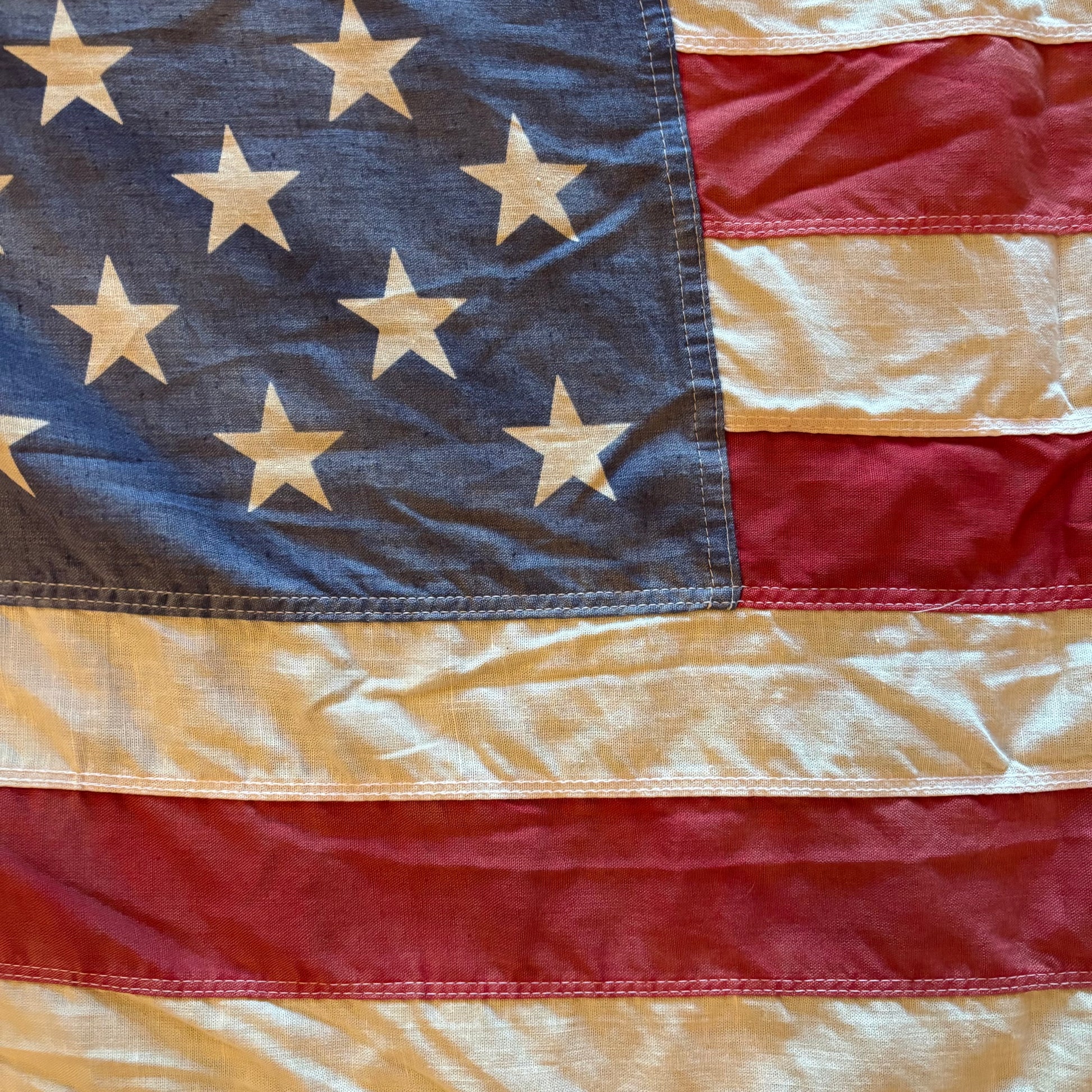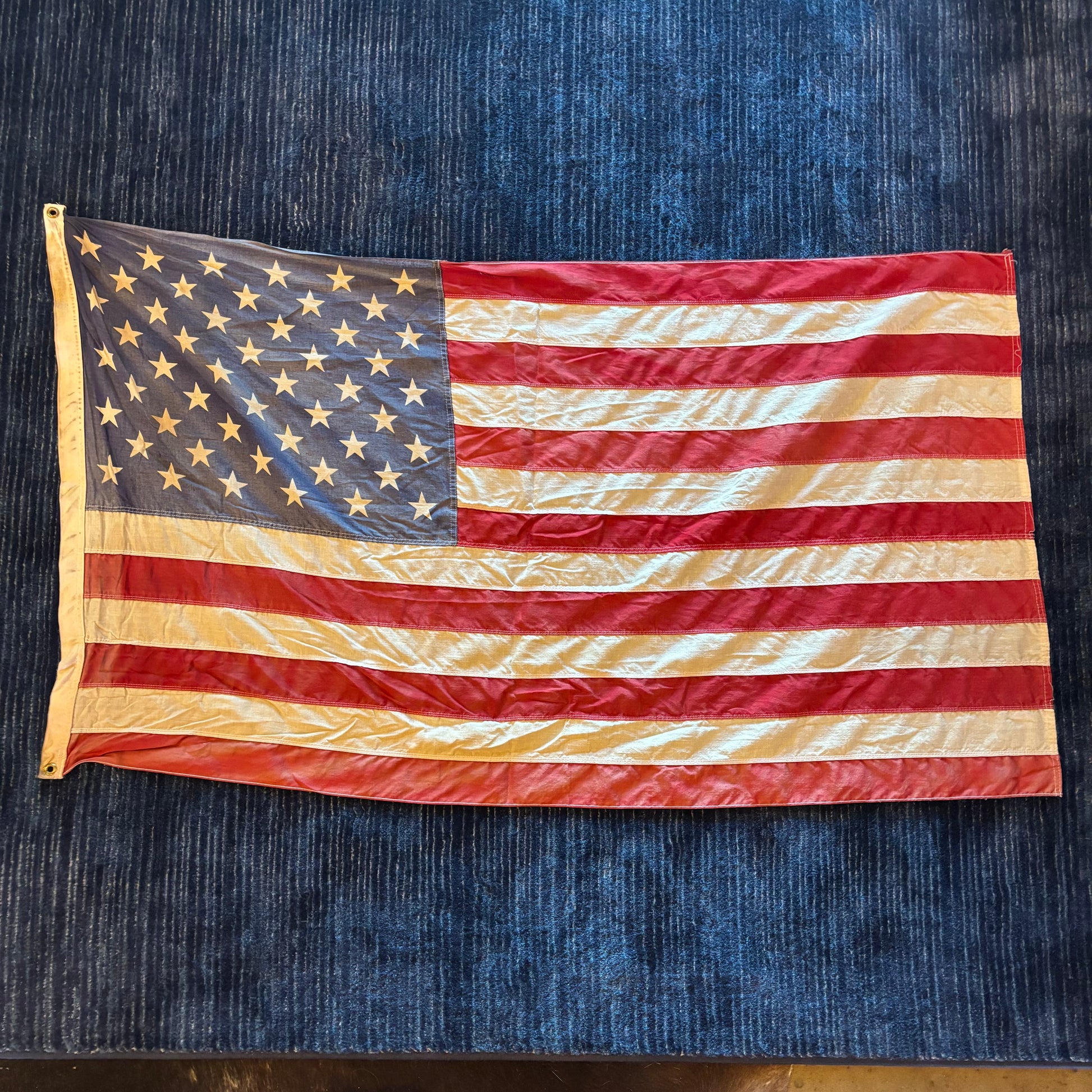 Vintage USA flag with 50-stars circa 1970/80s era in worn but goof condition, great and authentic wear, 32 x 56"