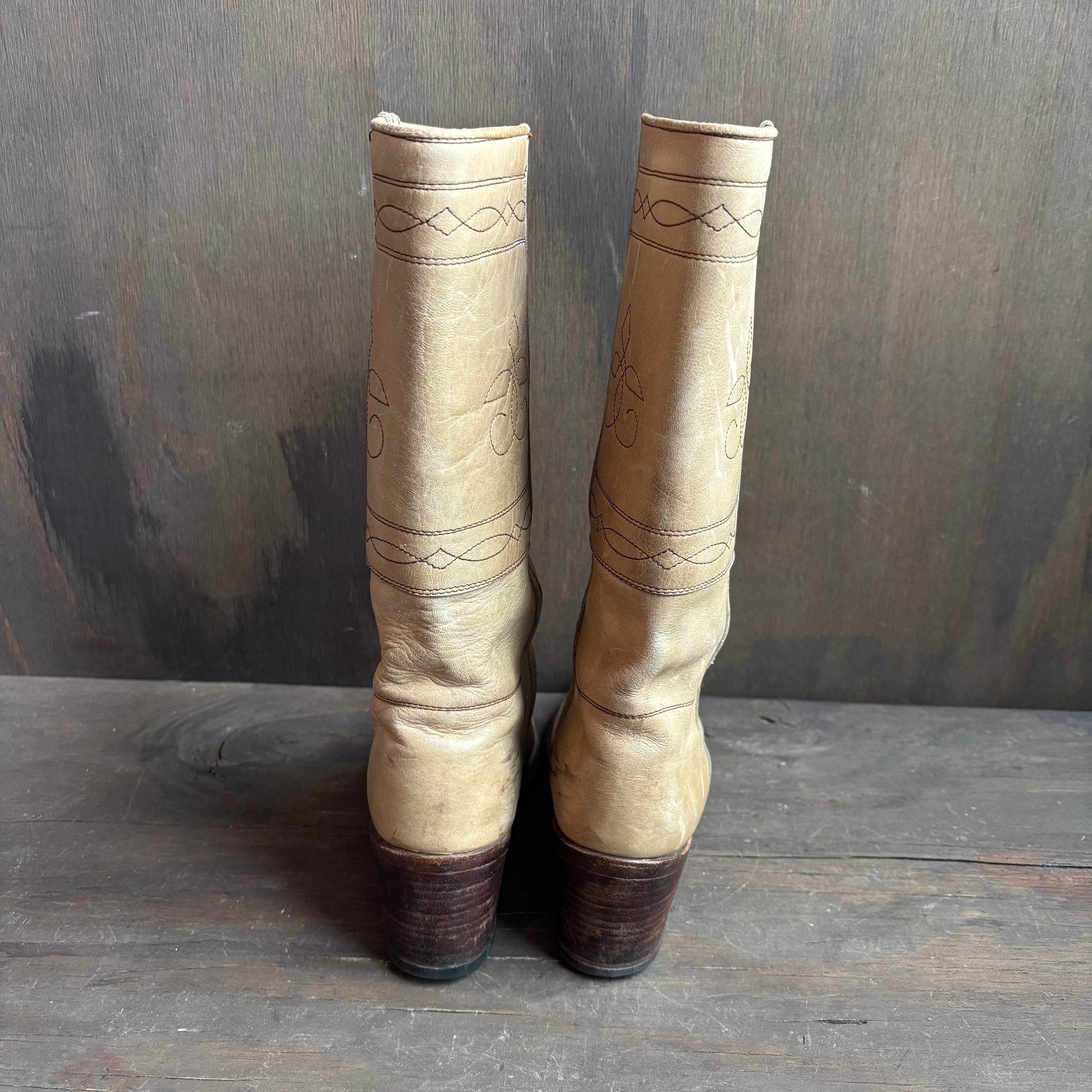 Great looking vintage beige leather boots in good condition considering age, marked women's 39 but fits like a women's 7.5 / men's 6