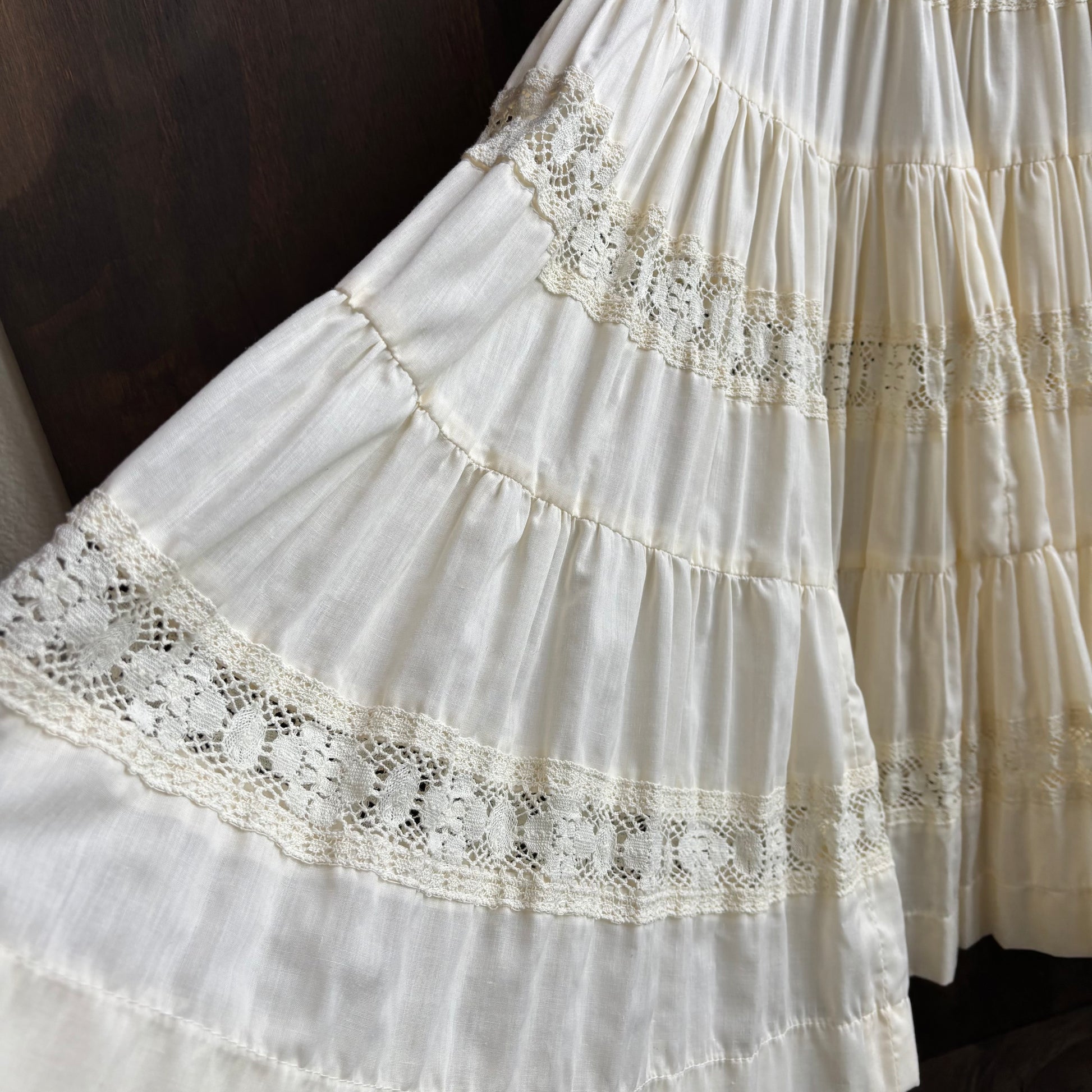 Vintage Cream Cotton and Lace Skirt
