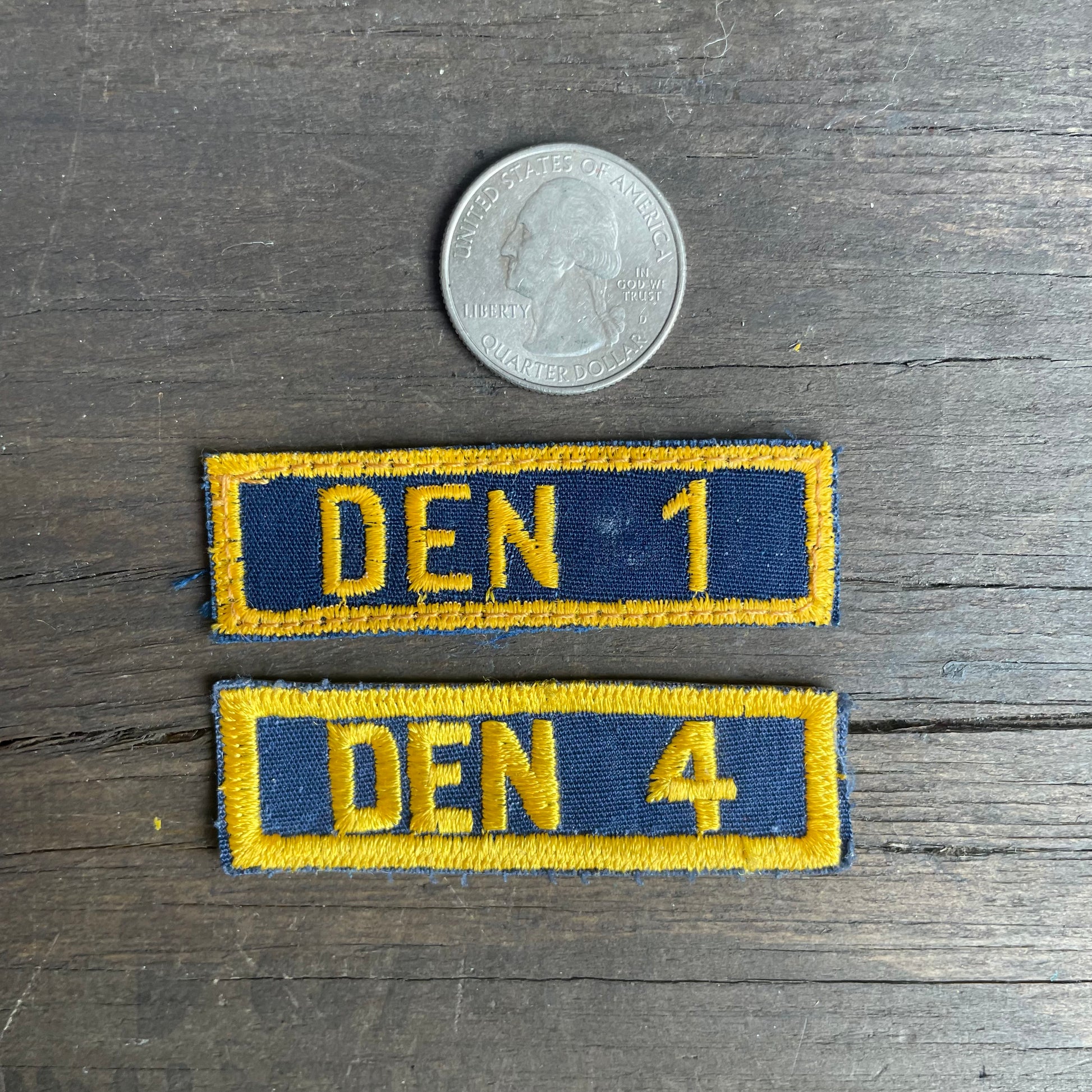 Vintage navy and gold Cub Scout Den Patch in Den 1 and Den 4. Quarter for scale