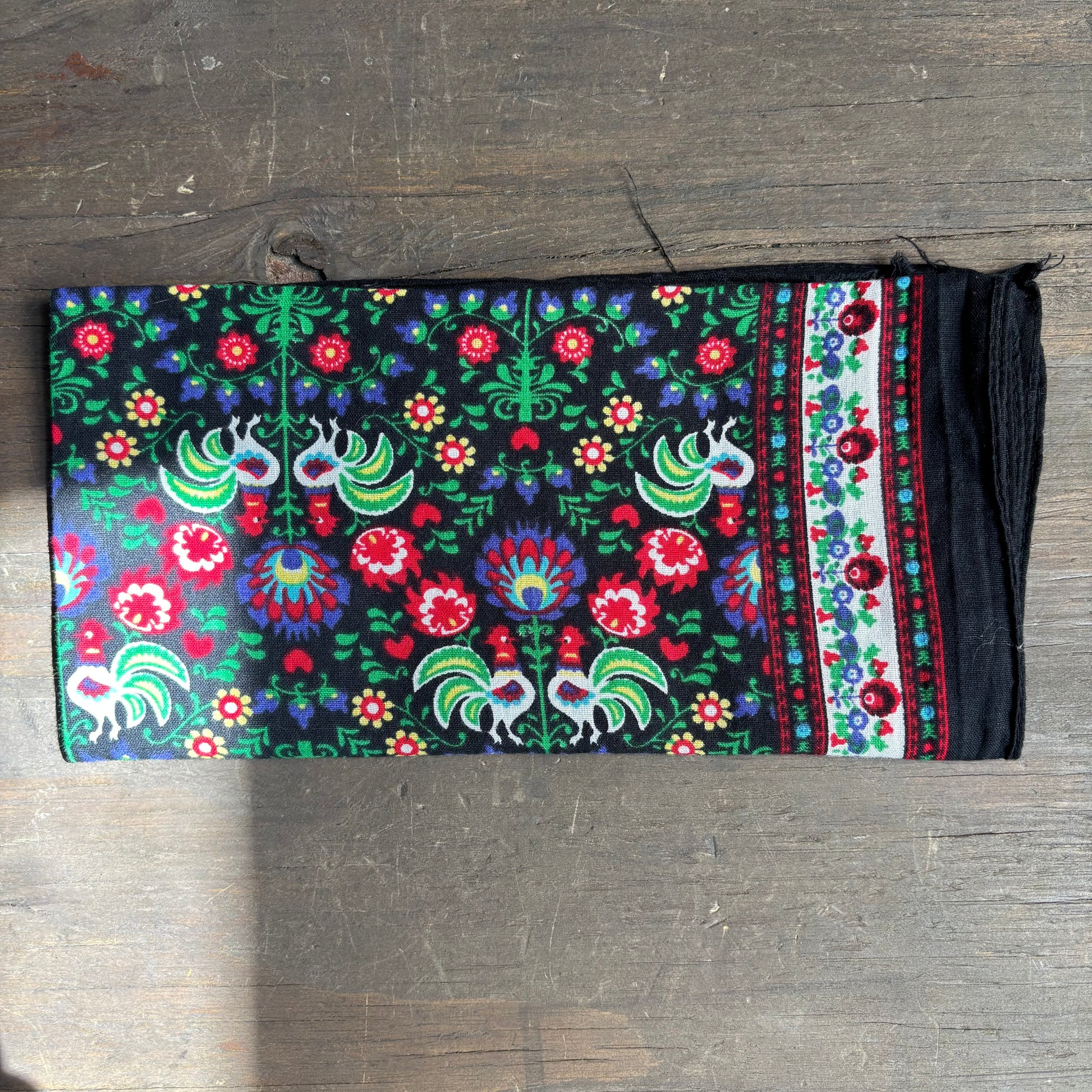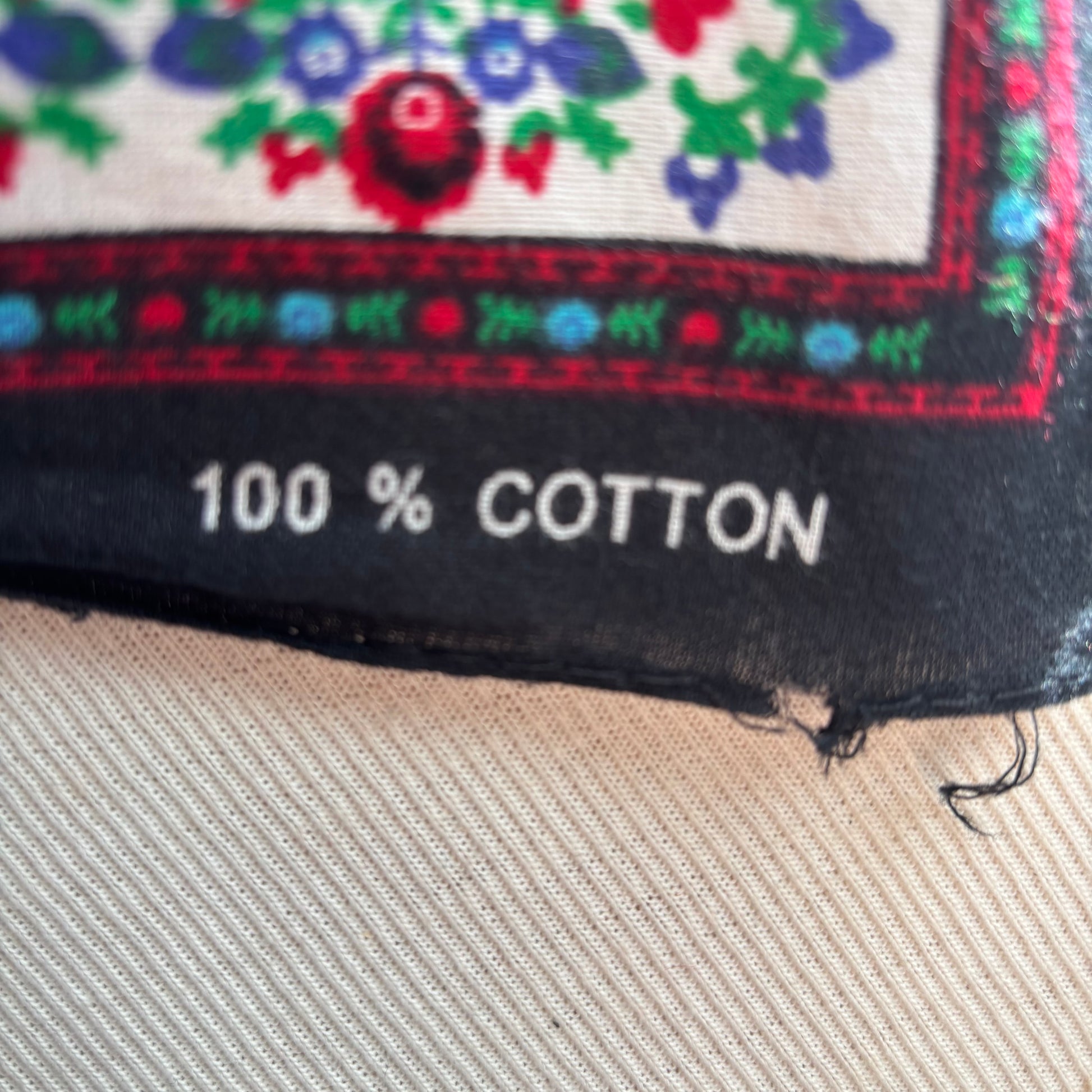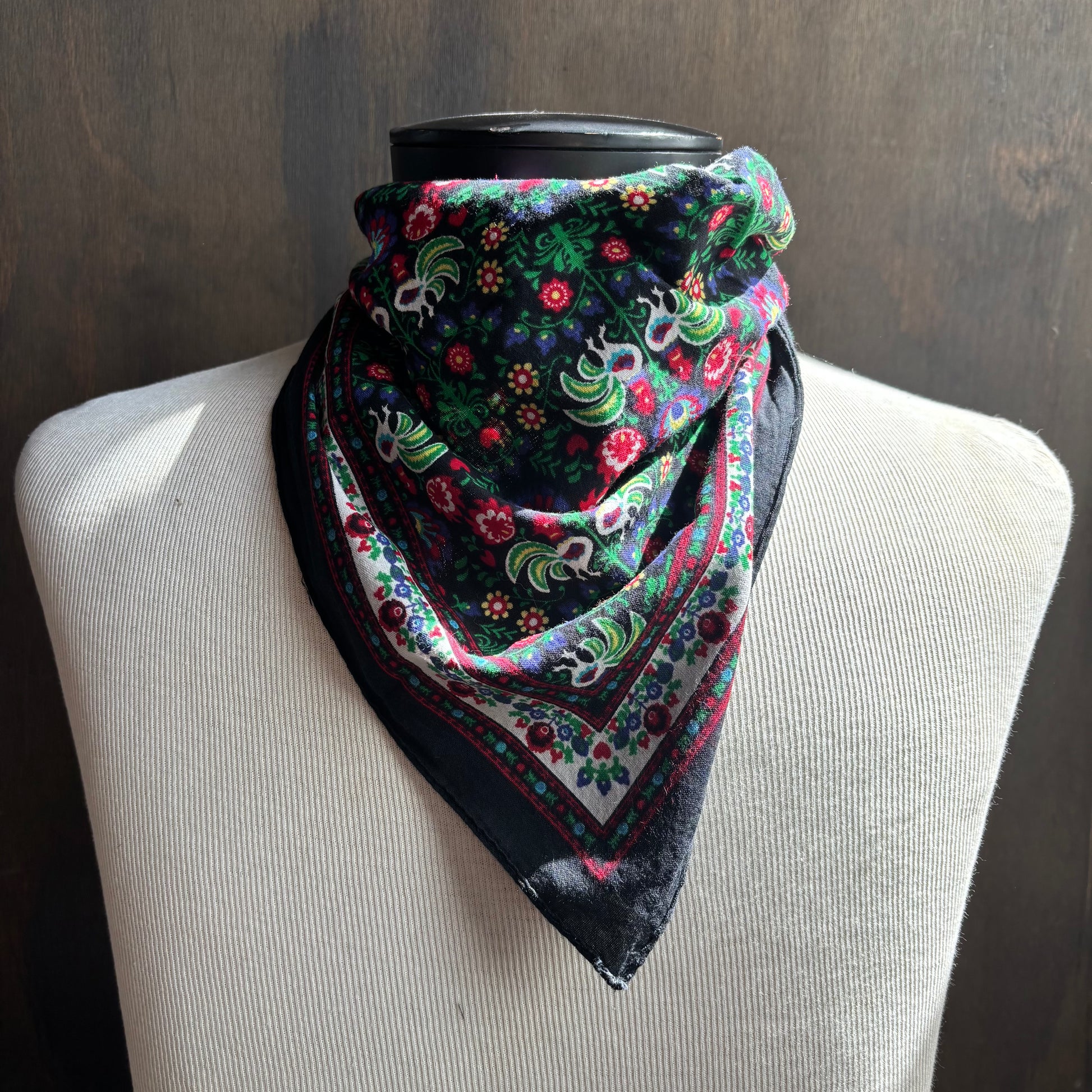 Fun and pretty vintage 100% cotton black bandana with floral print, standard size.