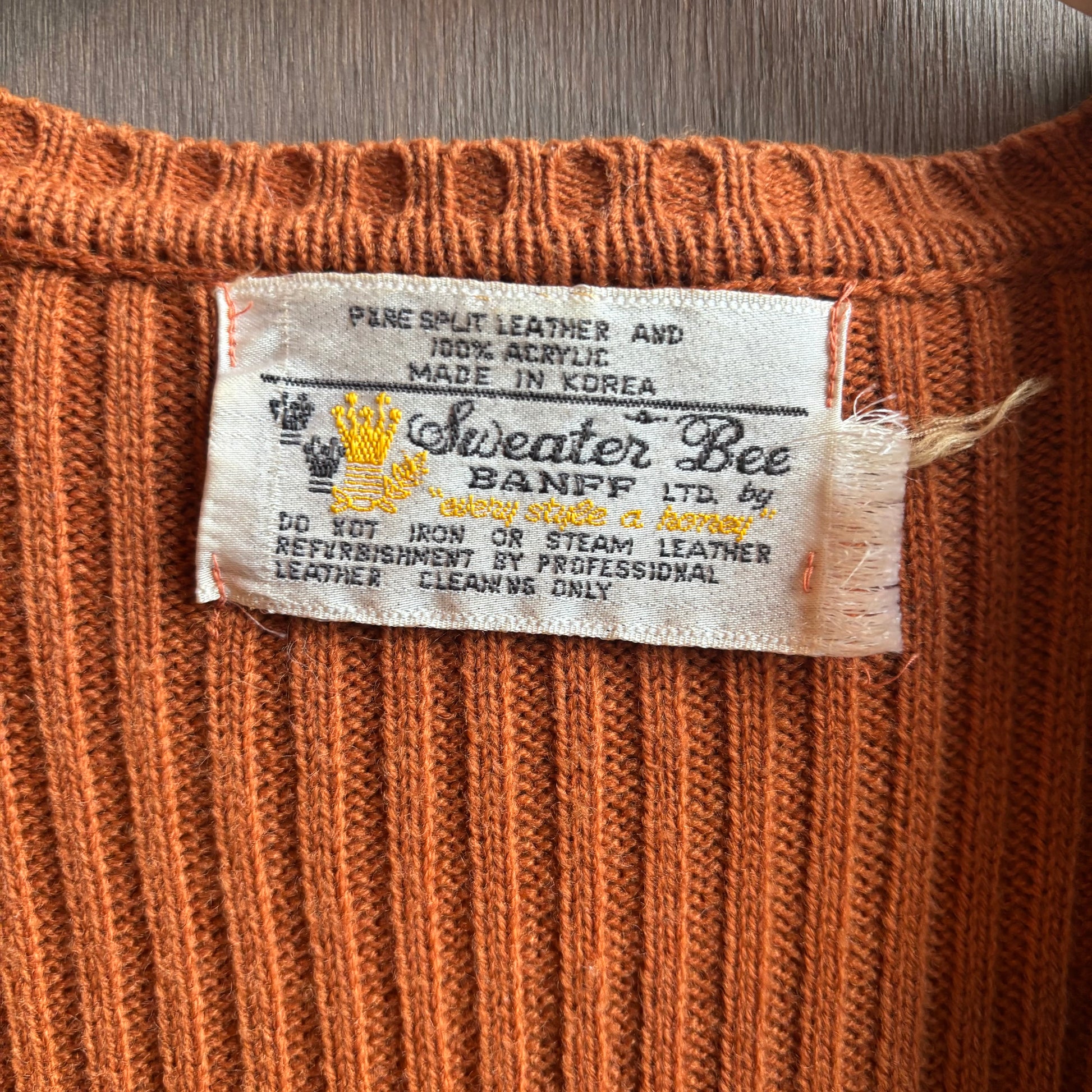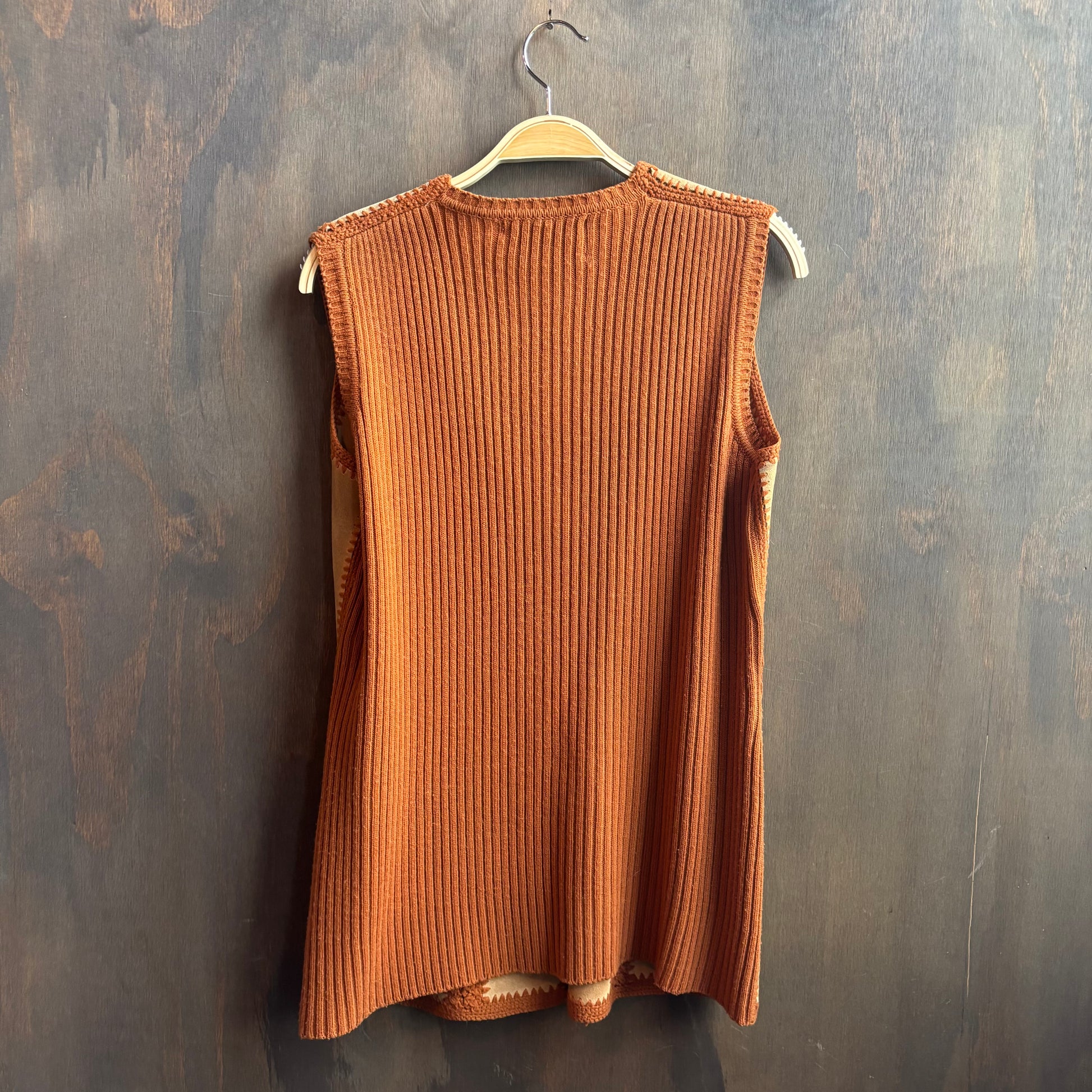 Wonderfully 70s vintage leather crochet vest with button closure and long tunic style cut, no size tag but fits like a M