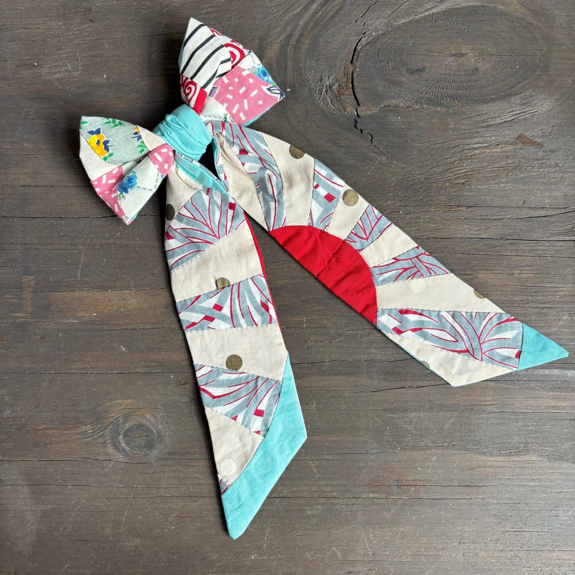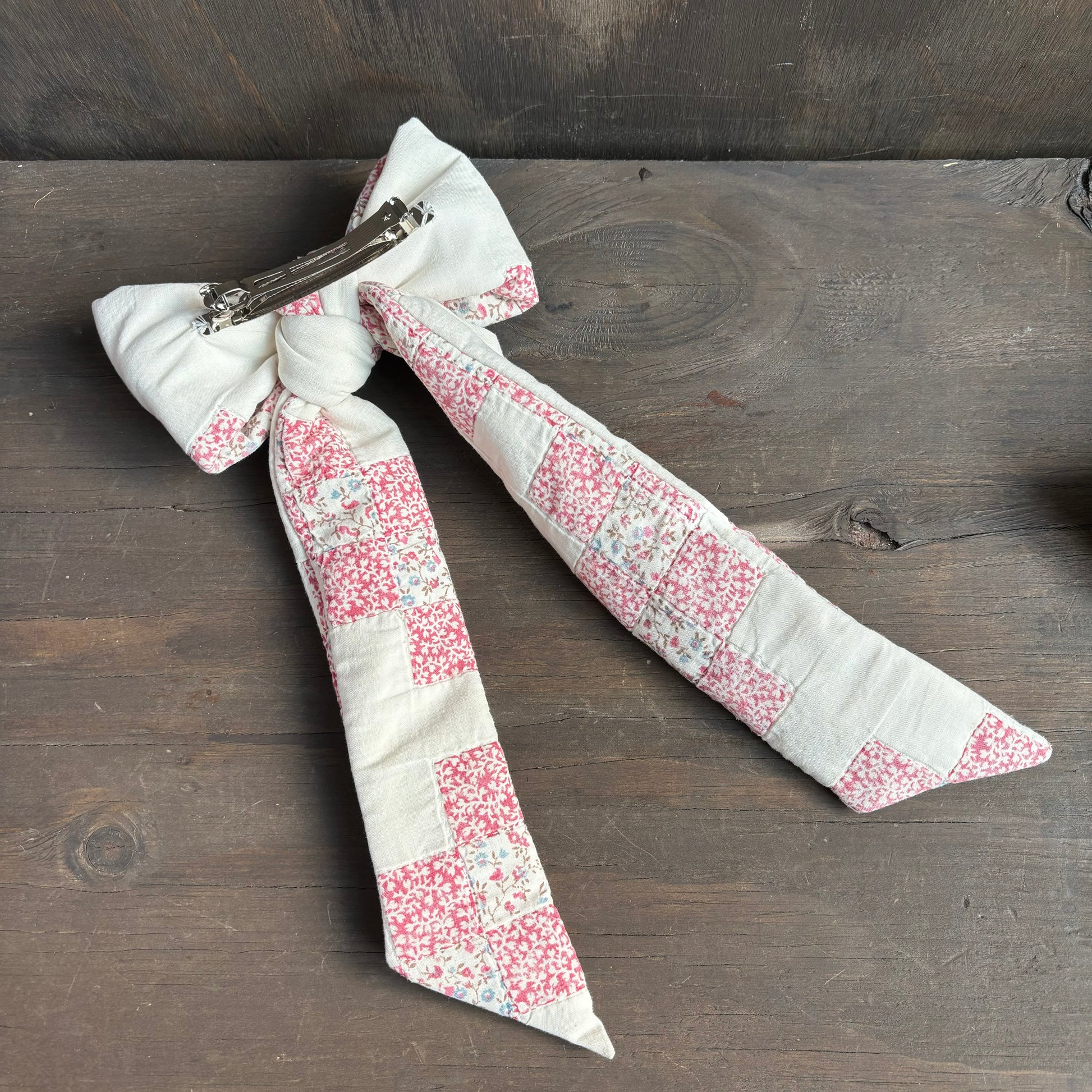 Bow with barrette backing, created in Denver, CO from a vintage quilt.