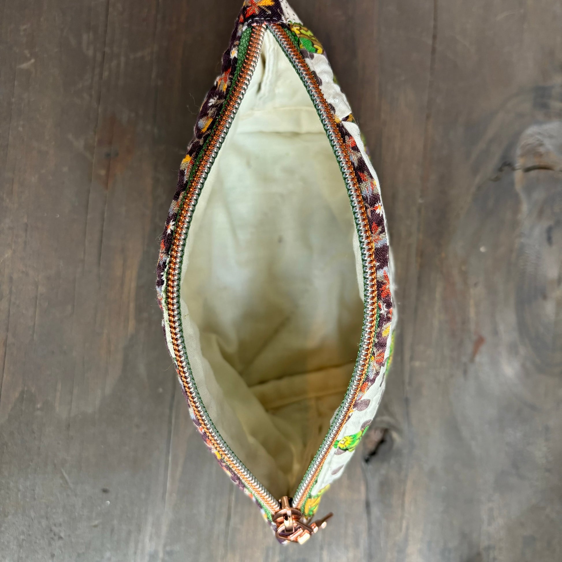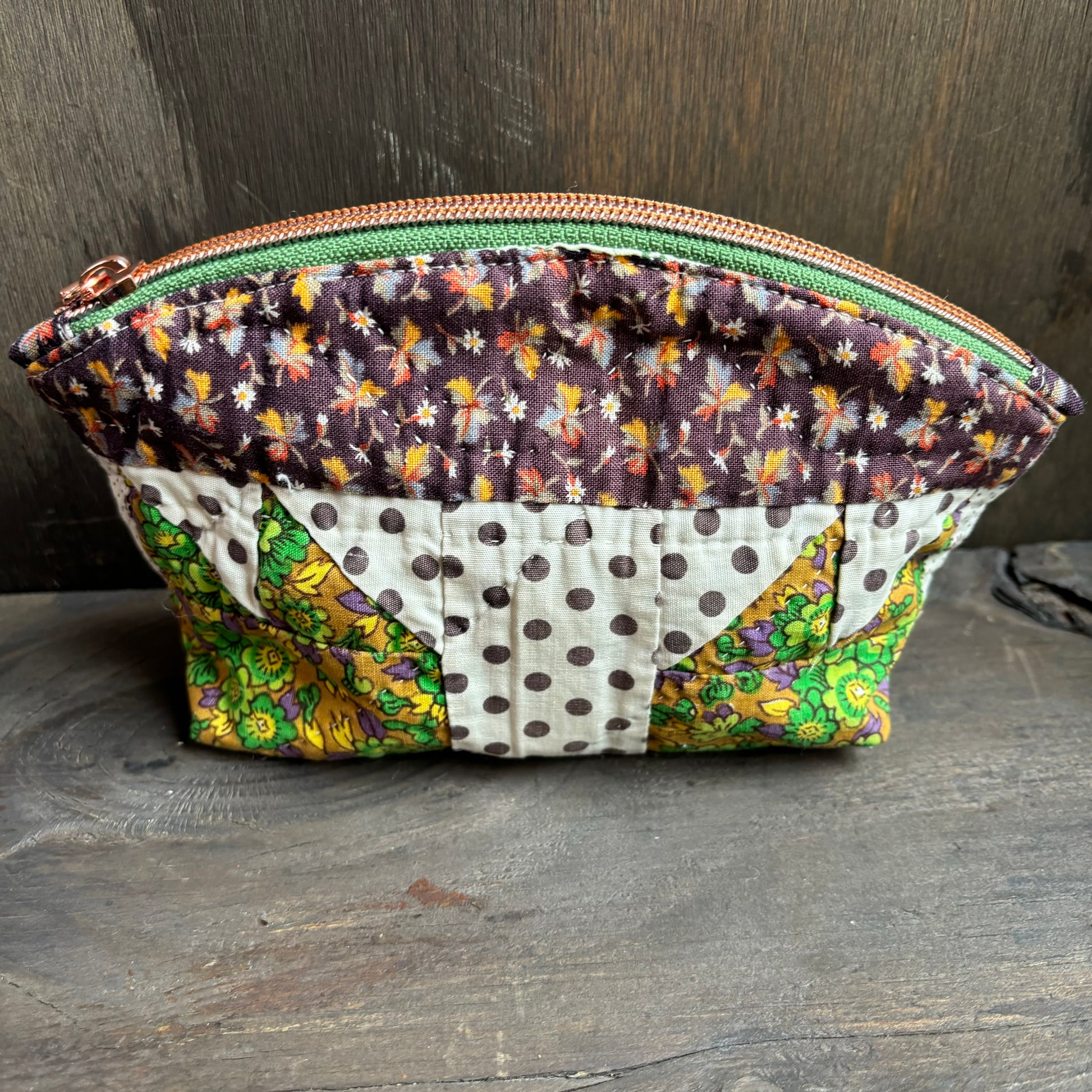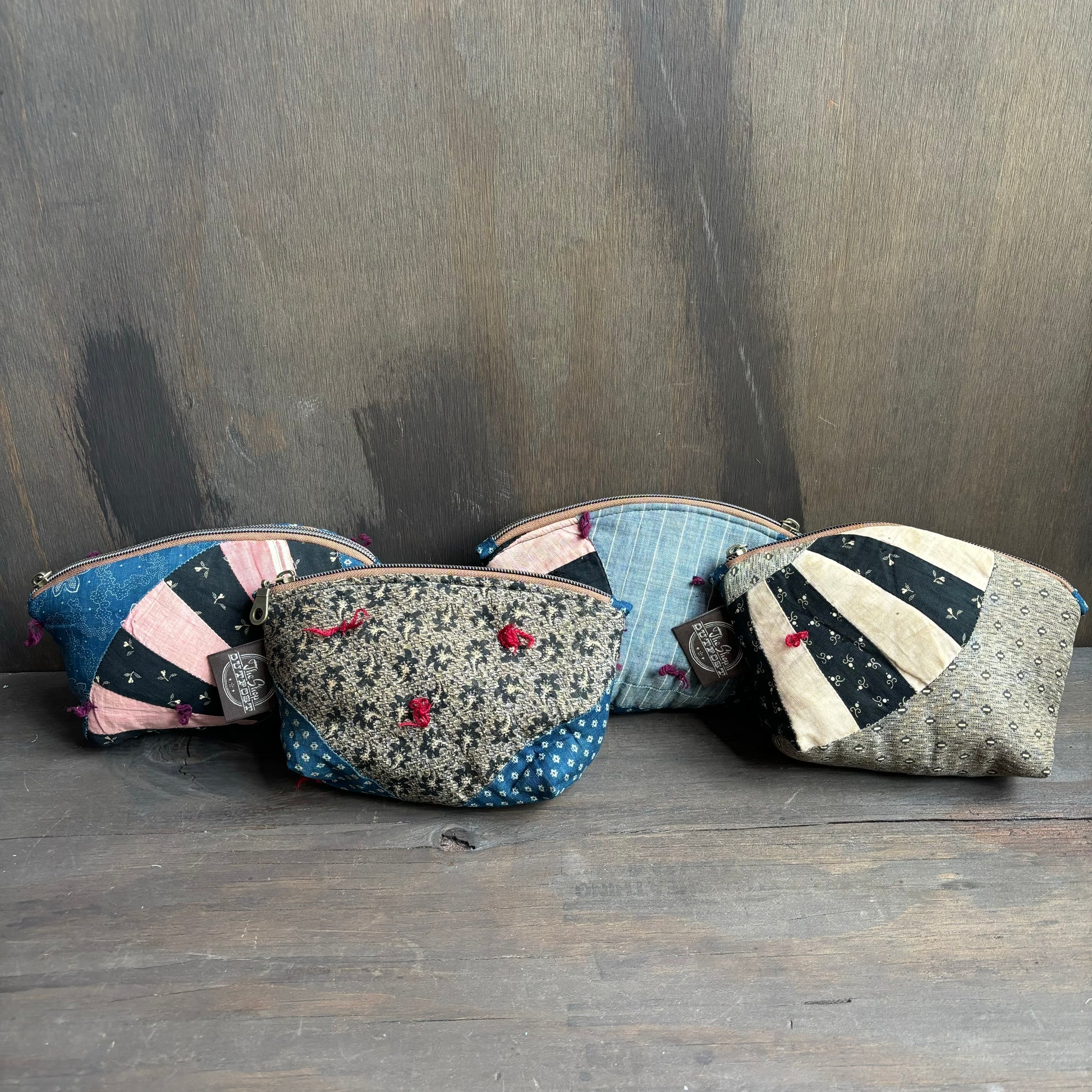 Made locally in Denver, Colorado these cute cosmetic bags are made of upcycled vintage quilt scraps. Perfect for travel and gift giving. 8x6"