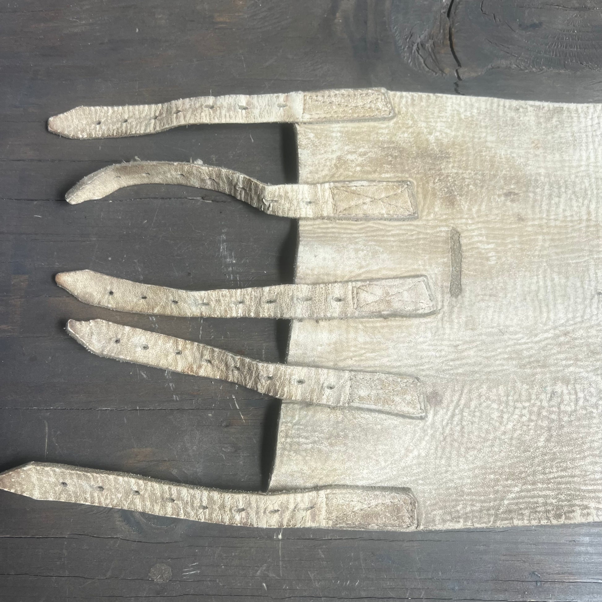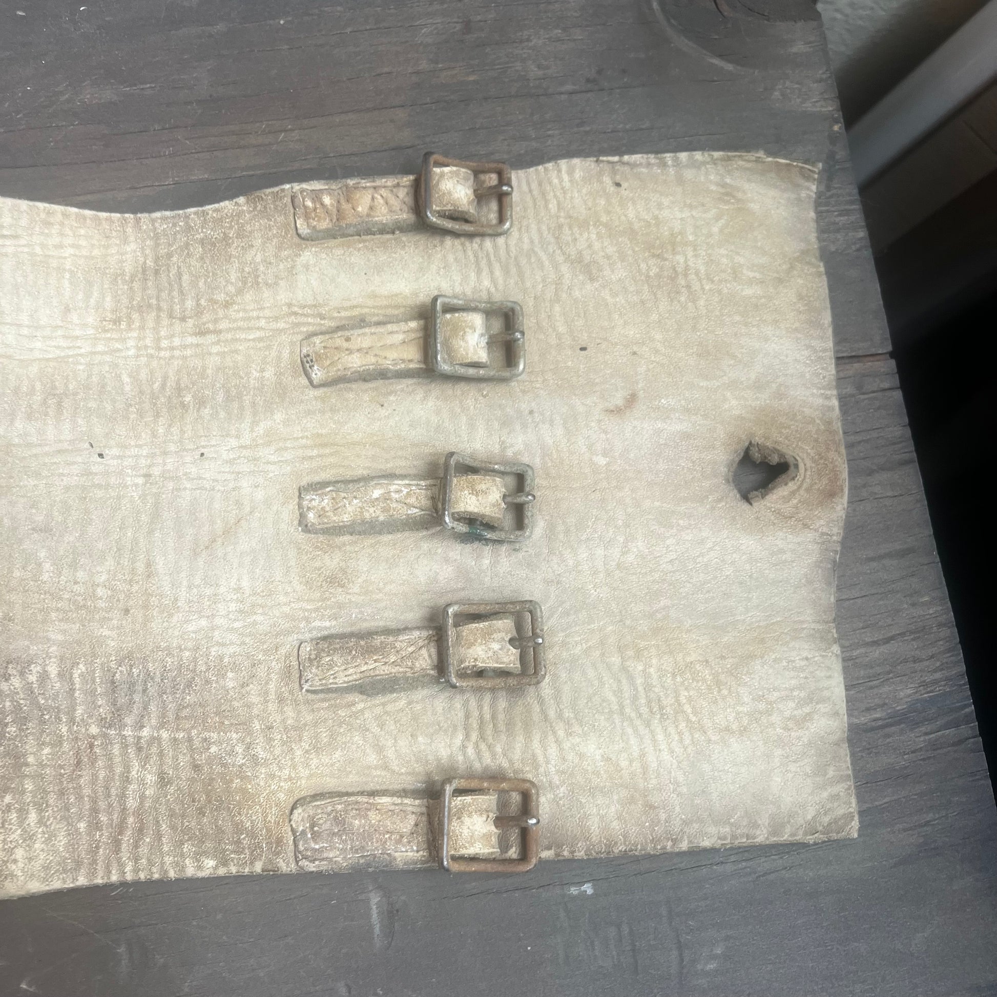 Gorgeous leather kidney belt. Has 4 buckles and belt straps. In good vintage condition, has one hole in the leather near the buckles. 34” long, fits size M.