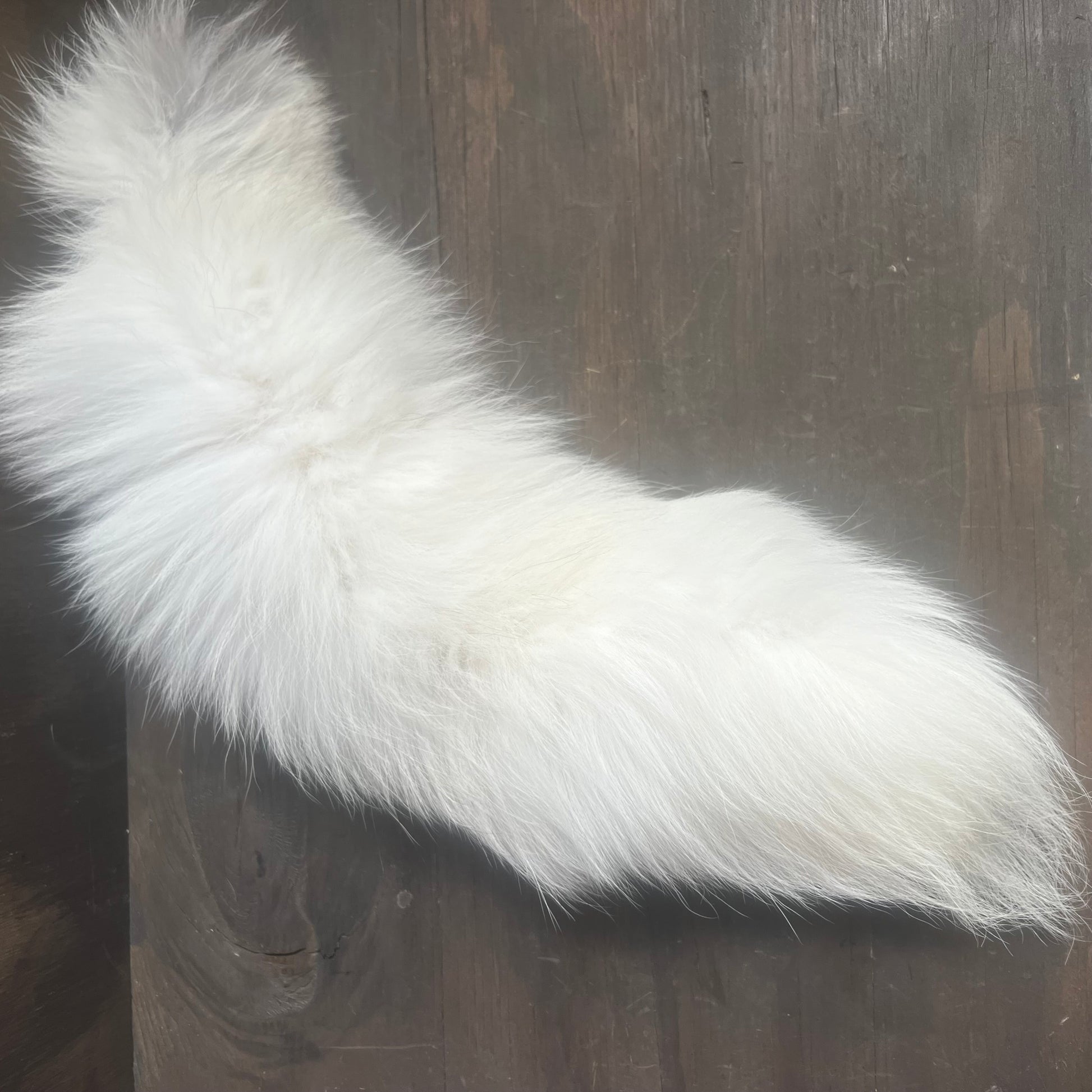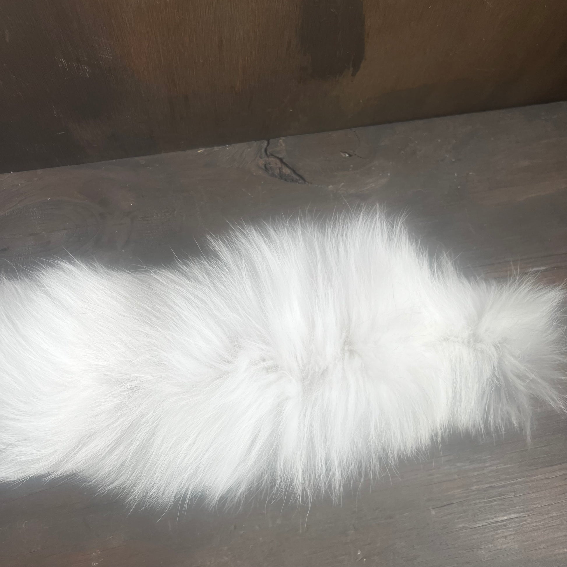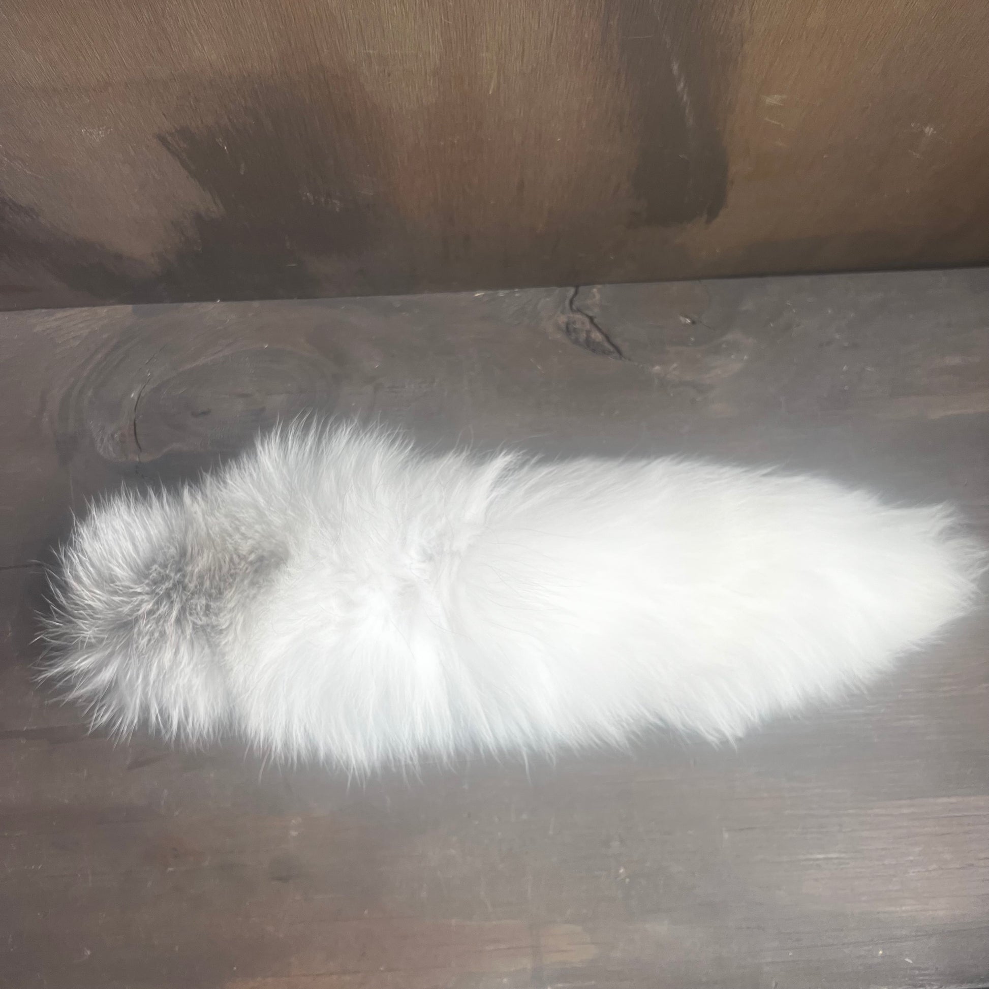 Stunning genuine white fox tail with attachment to fasten to a bag or use as home decor! In excellent condition.