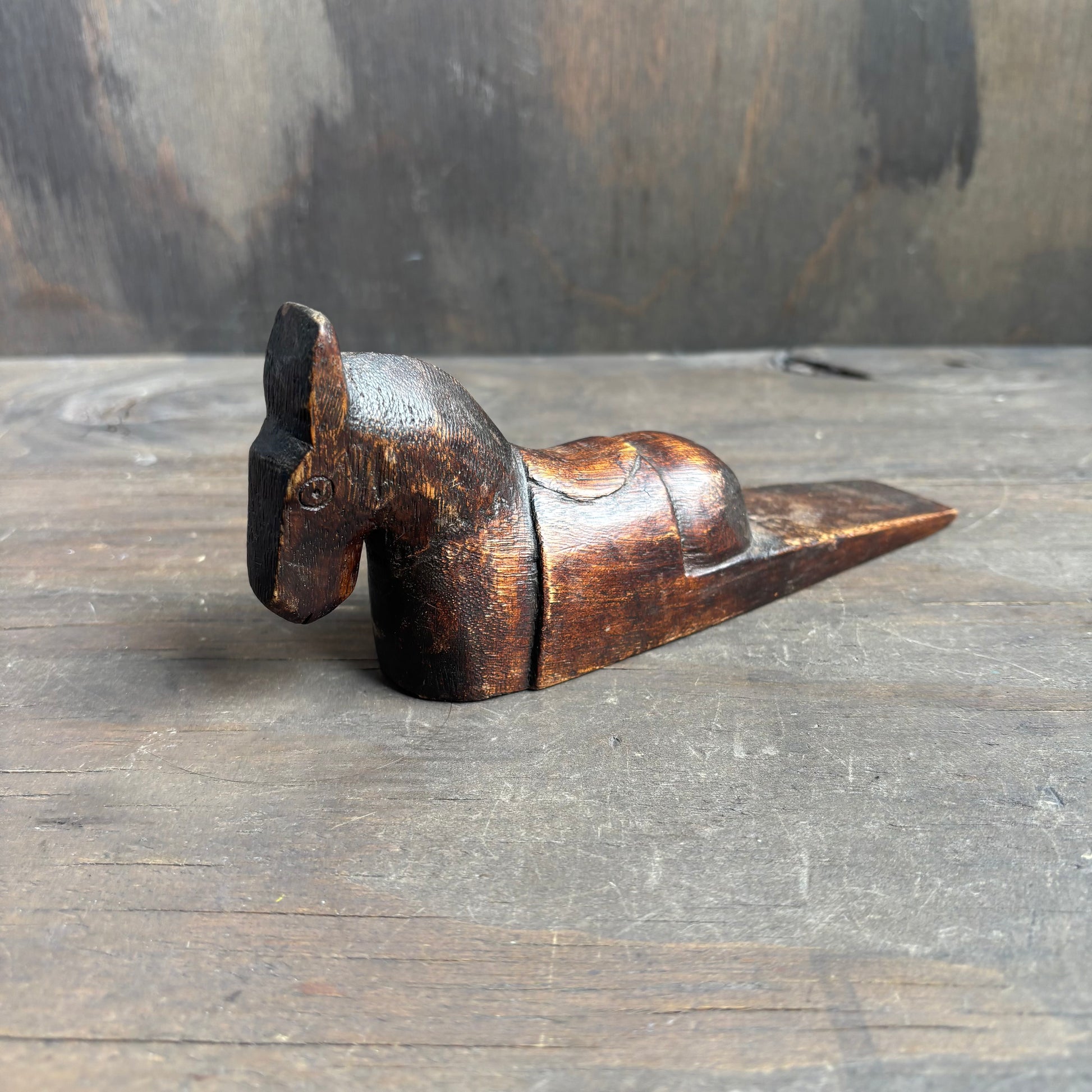 Vintage carved wood horse door stopper, fully functional and completely adorable, keep doors well closed or open with this special piece.